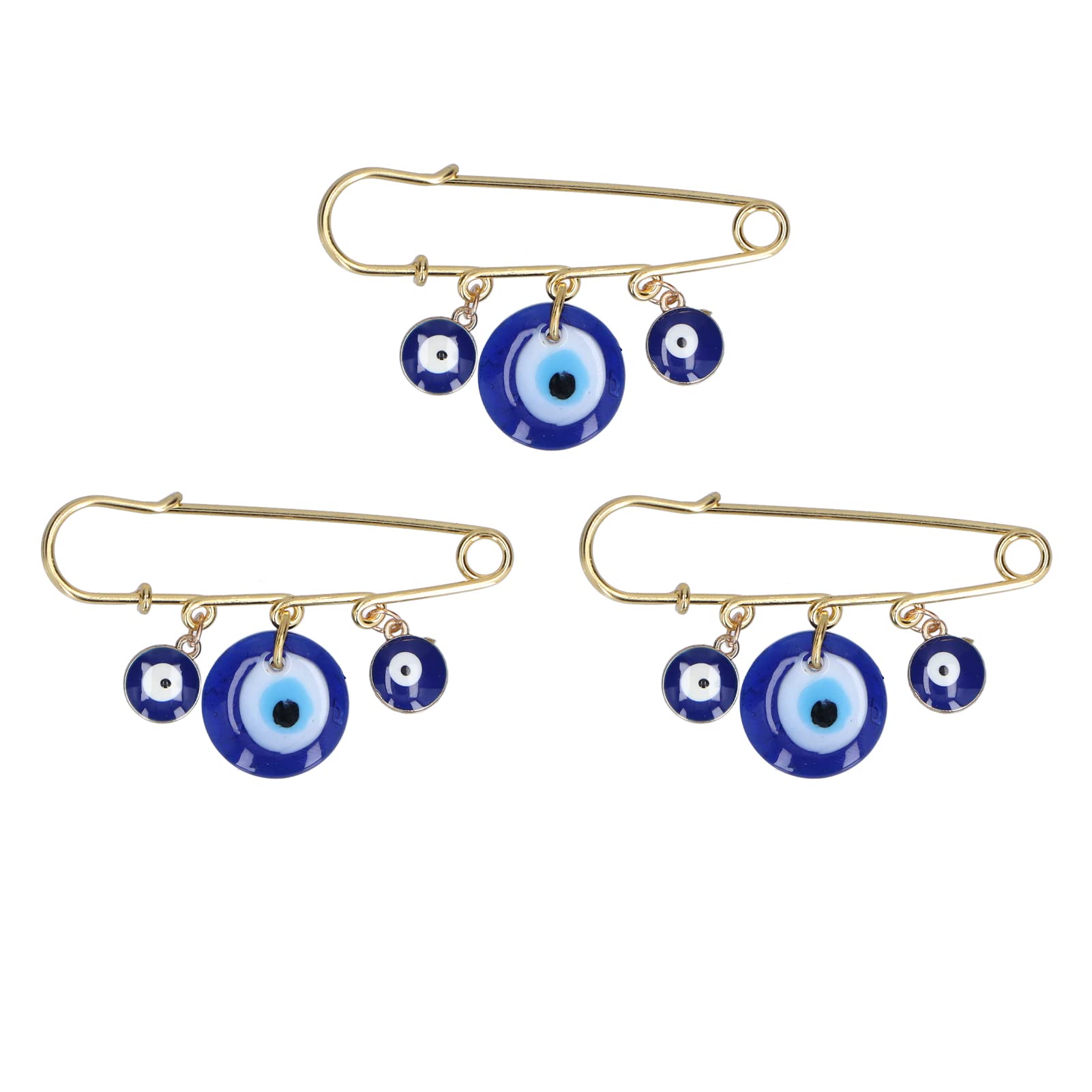 Ler Pin for Baby,Evil Eye Gold Pin,Sewing Notions Supplies,3Pcs Clothing Pins 3 Blue Eye Pendants Golden Pin Exquisite Multifunctional Safety Pins for Clothes Bag Scarf Decoration