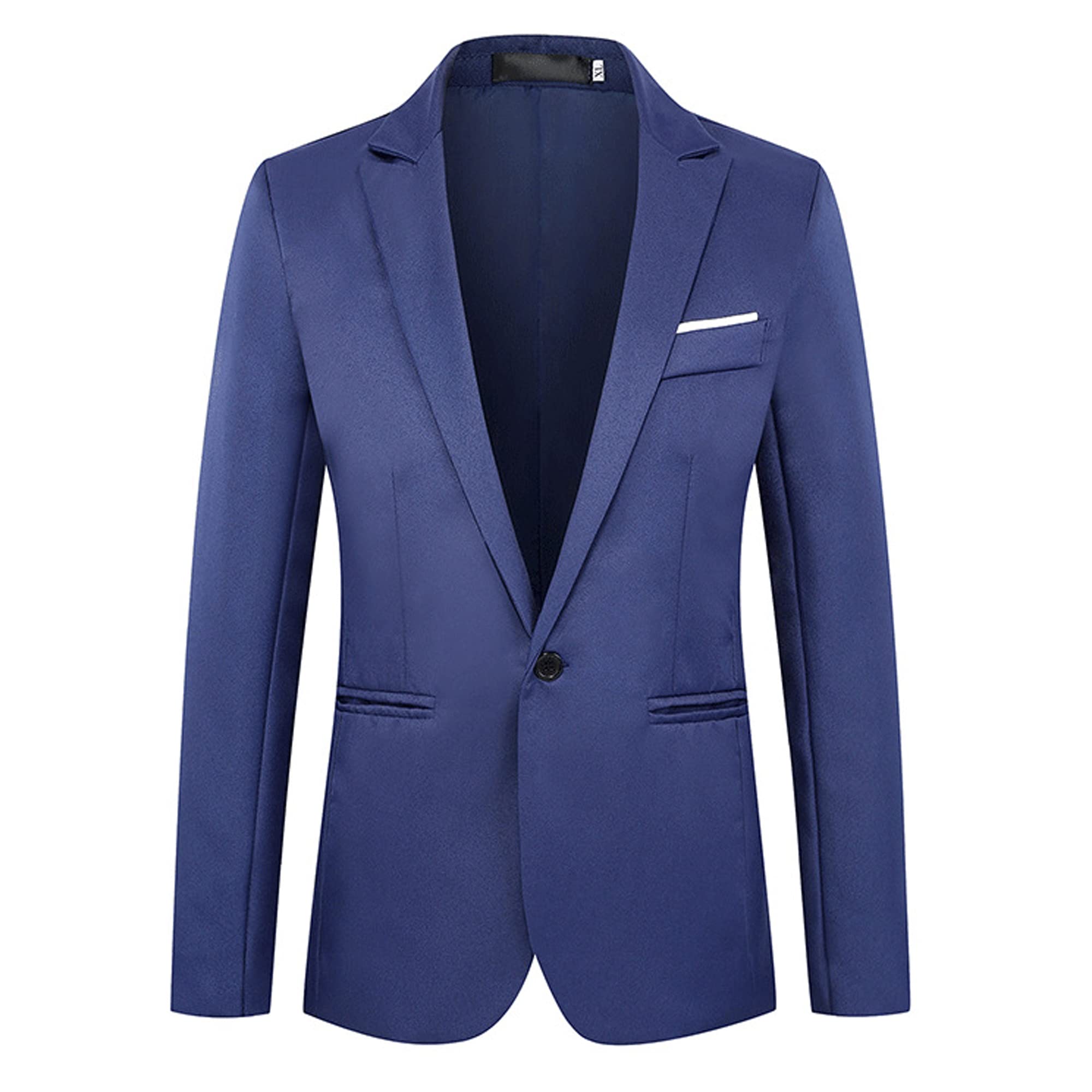 Letuwj Men's Coat Casual Suit Solid Color Suit Blue 2XL