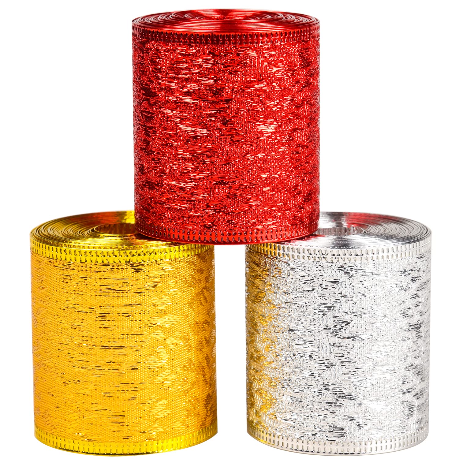 ·The wired ribbon in the package includes three colors of red, gold, and silver, with a total of 3 rolls