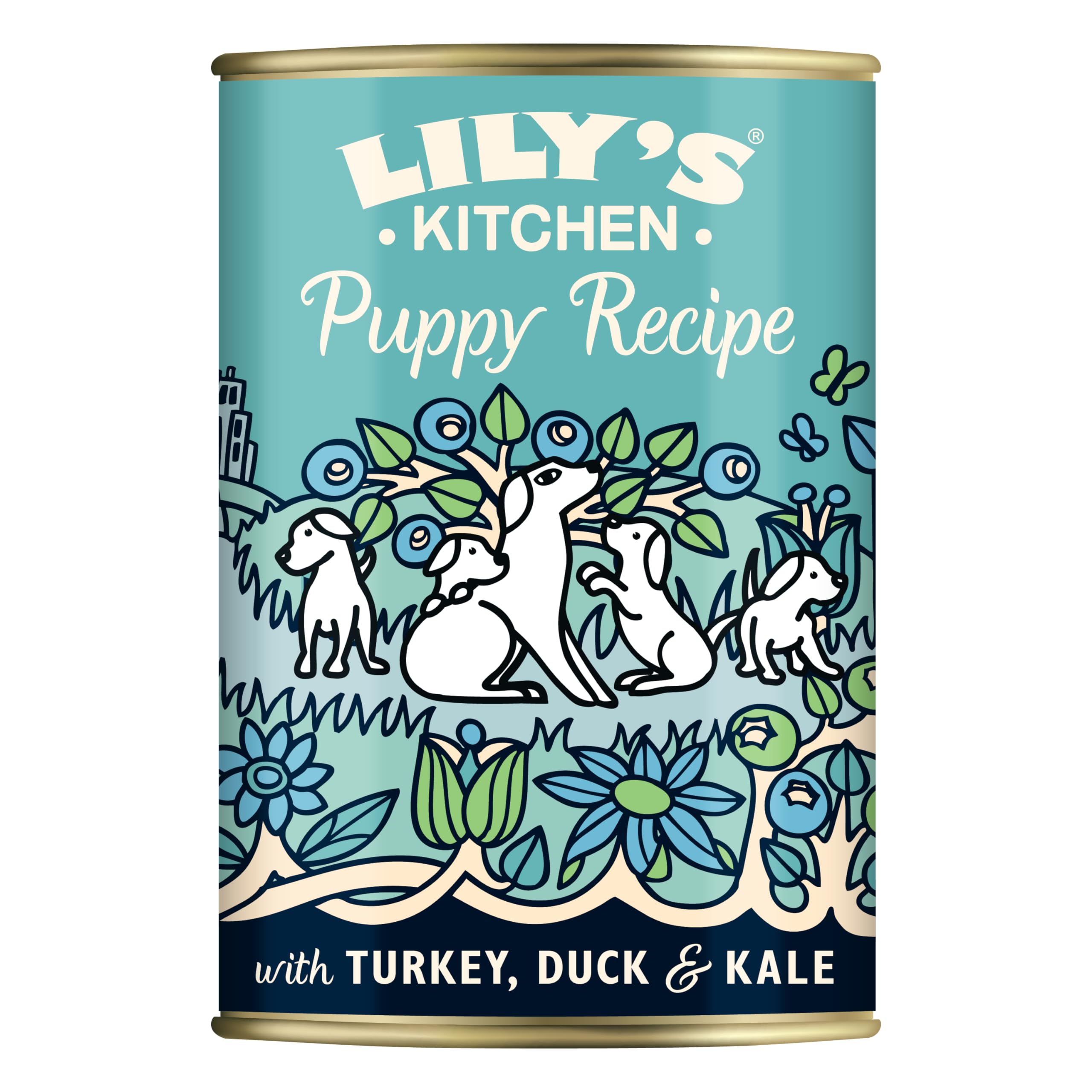 Product DescriptionLily's Kitchen worked closely with Lily's Kitchen vet and nutritionist to create this delicious and nourishing recipe that gives the newest member of your family the very best nutrition and taste. At Lily's Kitchen believe puppies deserve the very best start in life. Made with lots of freshly prepared turkey and duck, Lily's Kitchen have also included wholesome fruit and veg for extra nourishment. Sweet potato and pumpkin are great sources of carbohydrate that will keep your puppy sustained and full of energy, while salmon oil provides the natural omegas 3 & 6 that help with growth and development. You won’t find any nasty meat meals or fillers in this recipe, just natural, delicious ingredients (and it’s grain free, too). It has exactly the right levels of protein, calories and fat that growing pups need to help them stay healthy and on top form for all that learning and training to come. What makes Lily's Kitchen food special. This recipe is carefully crafted using natural ingredients with vitamins and minerals. Full of real, top notch freshly prepared meat and vegetables, it's completely free from nasty meat meals and fillers.IngredientsComposition Freshly Prepared: Turkey (41%), Duck (20%), Sweet Potatoes (4%), Pumpkin, Kale (2%), Cranberries, Potatoes, Carrots, Vitamins & Chelated Minerals, Salmon Oil (0.5%). Botanicals & Herbs: Golden Rod, Nettle, Aniseed, Celery Seed, Rosehips, Marigold Petals, Cleavers, Seaweed, Alfalfa, Milk Thistle, Dandelion Root, Burdock Root.DirectionsAlways make any dietary changes gradually. Sudden changes to the diet can cause tummy upset. So, if you are either changing to a different recipe or changing to a new foofd, do so gradually over 4-5 days.Box Contains6 x 400 g tin