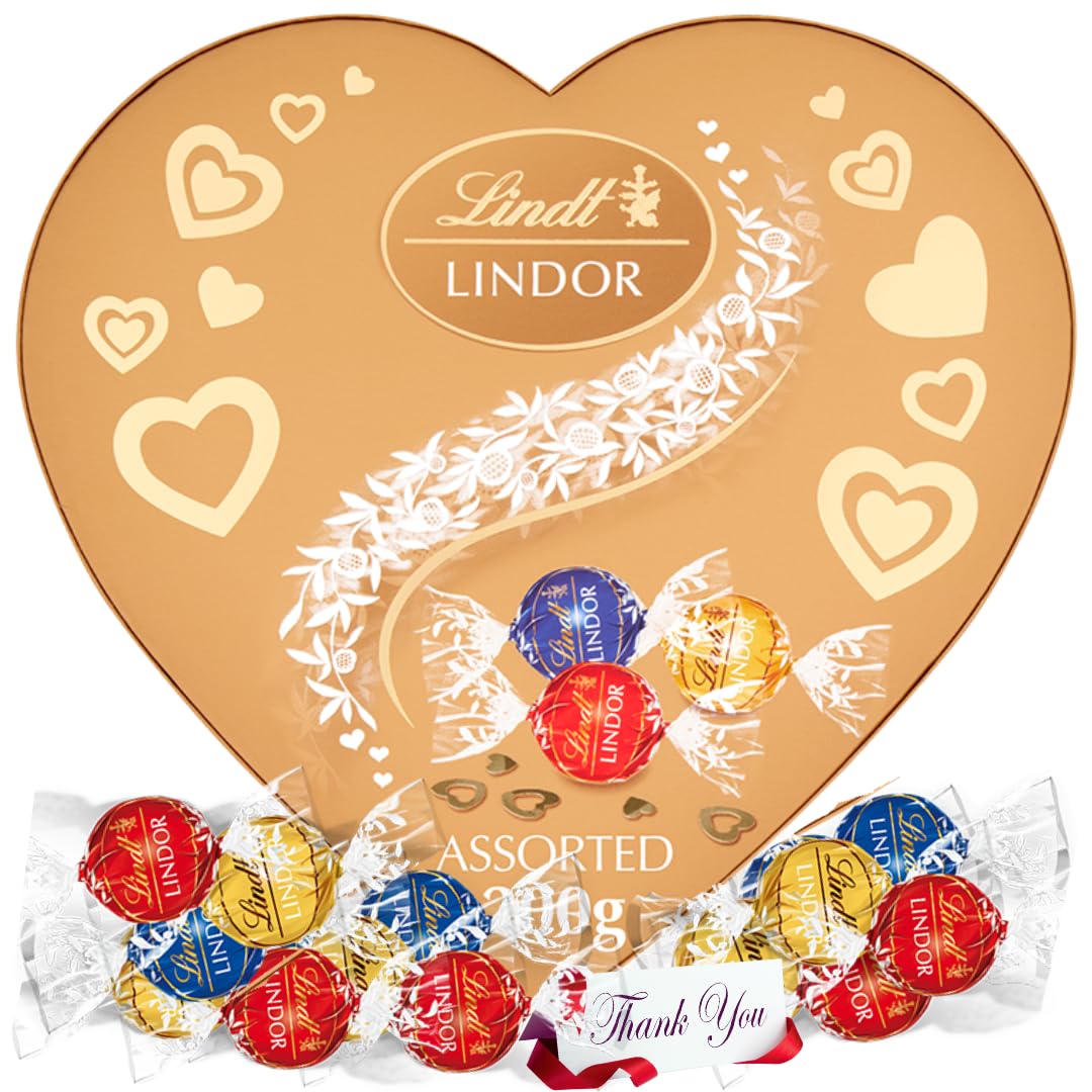 Lindit Lindor Chocolate heart box Liindt assorted 200g chocolate truffles Linddt Gold Heart with Selection Truffles Perfect Gift for Her, Girlfriend, Mum Chocolate Gift, Chocolate Hamper Idea, Valentines Day Gift, Mothers Day gift with Thank you tag Treat your loved ones to the ultimate indulgence with the Linddt Lindor Chocolate Heart Box, a luxurious collection of creamy truffles that melt in your mouth. Encased in an elegant, gold, heart-shaped box, this 200g assortment is carefully curated with the finest chocolate flavors, including the iconic milk, velvety dark, and luscious white chocolate truffles. Includes an indulgent selection of milk, dark, and white chocolate Lindor truffles. Created by Lind'ts Master Chocolatiers with unparalleled craftsmanship and passion, every truffle delivers a moment of pure bliss. This stunning box is not just a chocolate collection but a gift that speaks volumes, perfect for Valentine's Day, anniversaries, or simply to show appreciation for someone special. The Linddt Lindor Heart Box is the ideal choice for gifting. Whether you're surprising your girlfriend, wife, mom, or dad, or looking for a luxurious treat to complement your festive chocolate hamper, this box will impress every chocolate lover. Celebrate life's sweetest moments with Linddt Lindor, a name synonymous with quality and indulgence Indulge in the luxury of Linddt Lindor Chocolate Truffles, elegantly presented in a heart-shaped golden box. Designed to impress and delight, this 200g assorted chocolate truffle selection is perfect for celebrating life’s sweetest moments. Whether you're looking for a thoughtful chocolate gift, a heartfelt present for your girlfriend, or a special treat for dad, the Lindor Chocolate Heart Box is the perfect choice. Crafted by Linddt’s Master Chocolatiers, this box includes an assortment of creamy milk, velvety dark, and smooth white chocolate truffles. Each truffle is irresistibly indulgent, offering a moment of pure bliss with every bite. The stunning gold heart-shaped box makes it a beautiful centerpiece for gifting during holidays, anniversaries, or special occasions. Surprise your loved ones with the indulgent luxury of the Linddt Lindor Chocolate Heart Box. This stunning gold heart-shaped box contains a delightful selection of creamy and irresistible Lindor truffles, carefully crafted by Master Chocolatiers. Perfect as a thoughtful gift for her, your girlfriend, or even for dad, this box makes every occasion extra special - be it Valentine’s Day, or simply a way to say “Thank You.” Give the gift of chocolate happiness with Linddt, a trusted name in premium chocolate.