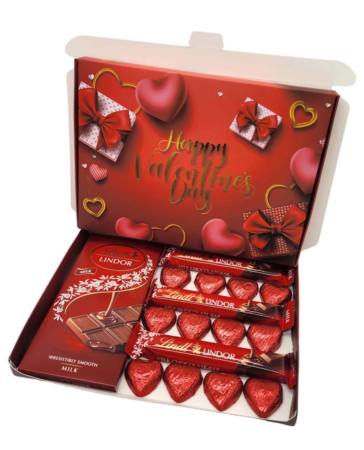 Lindt Lindor Milk Chocolate Bars & Hearts Gift Box Hamper Valentines Present
