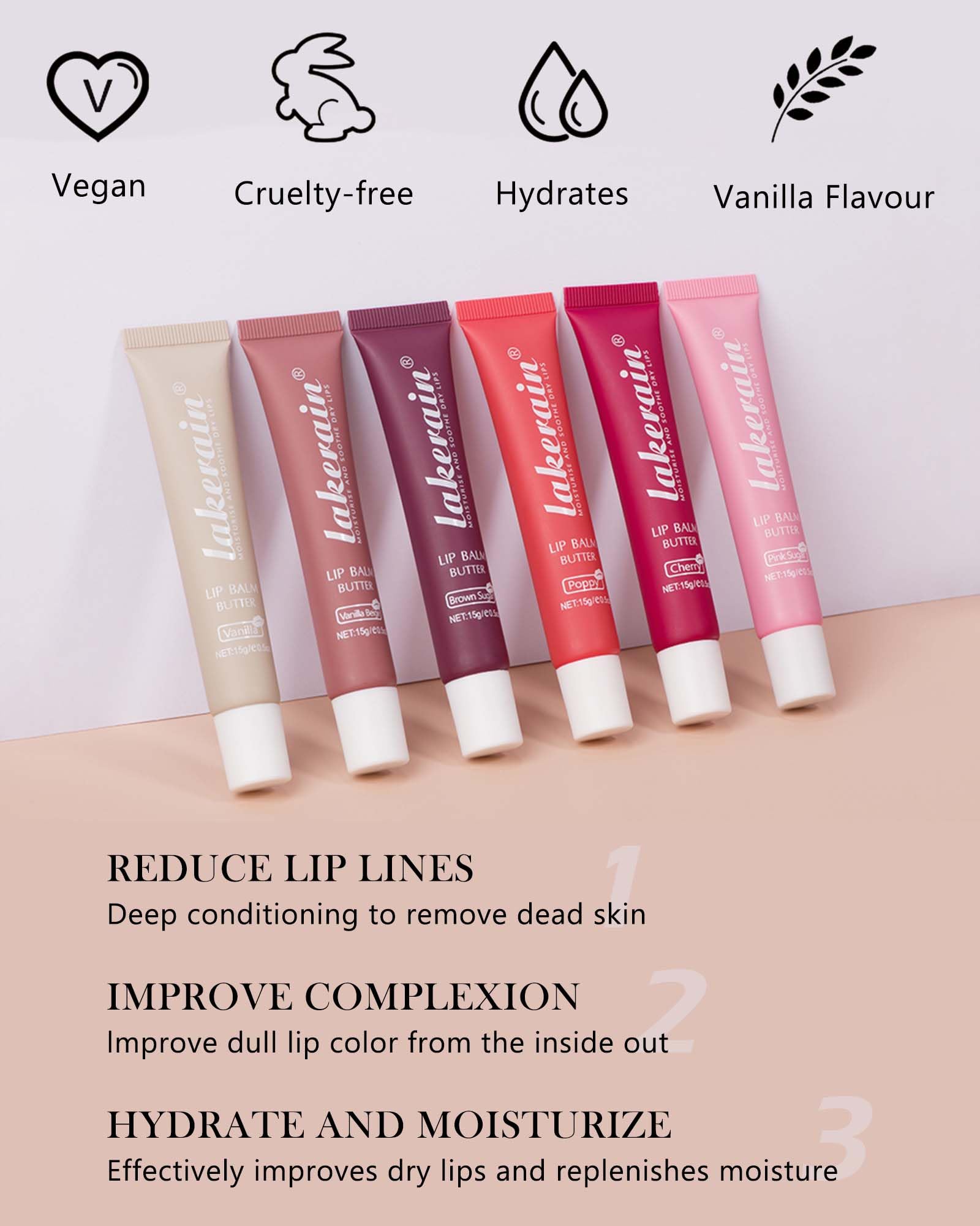 3. Made with an all-natural, vegan, cruelty-free and gentle formula enriched with essential oils that hydrate and repair dry, cracked lips and leave them smooth all day long.