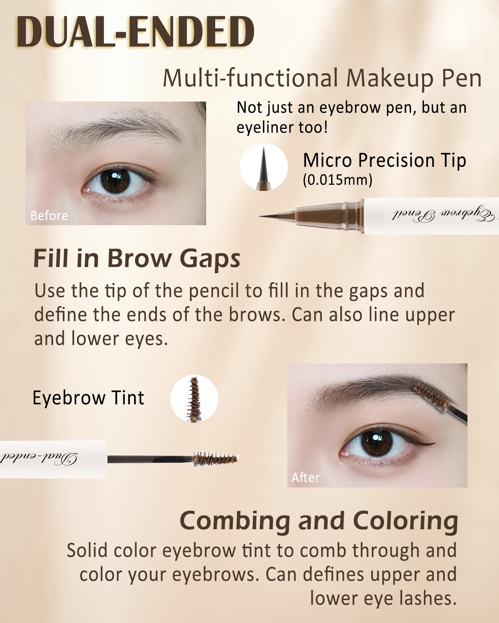 Net Weight: Eyeliner pen 0.5ml + Tinted brow gel 1.5g / pcs