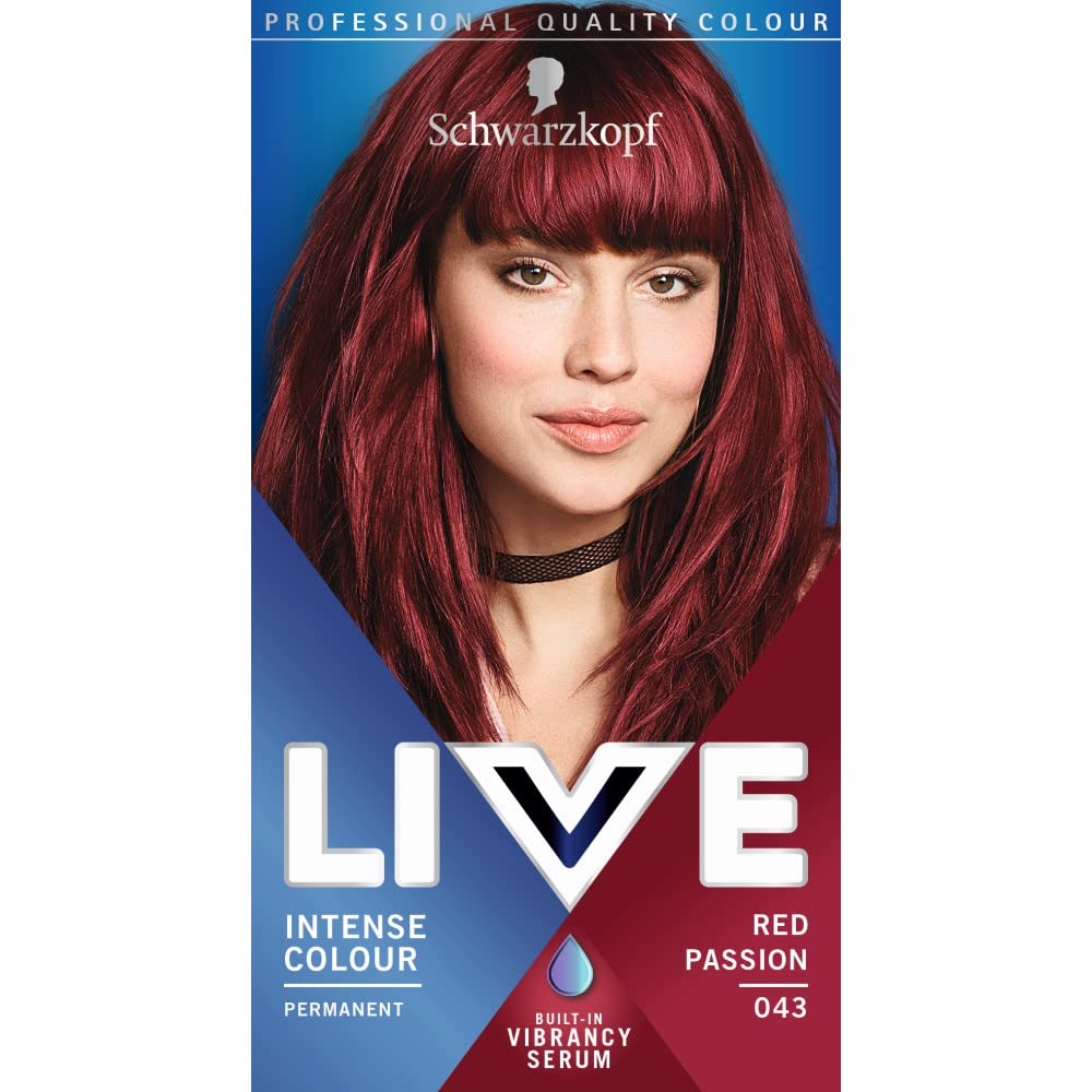 LIVE Schwarzkopf Intense Colour Passion Red Permanent Hair Dye 043, Long Lasting Red Hair Dye with Built-In Vibrancy Serum, fade resistant red Hair Dye