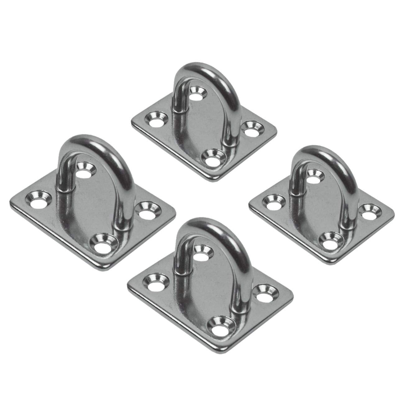 This Stainless steel 8mm eye plate can be used for a variety of marine and other uses. These are made from 316 grade marine stainless steel, which is more rust resistant than the more common 304 grade you will see on sale. These eye plates can be used for loads of different uses. Other than Sailing use; they can be utilised for holding punch bags or other training equipment. As roof or wall suspension brackets or for securing padlocks to doors. Ideal for use in the garden or for wall or roof mounting at home/work. Includes 4 pack of 8mm Eye Plate with 4 Screw Holes - Screws not included.