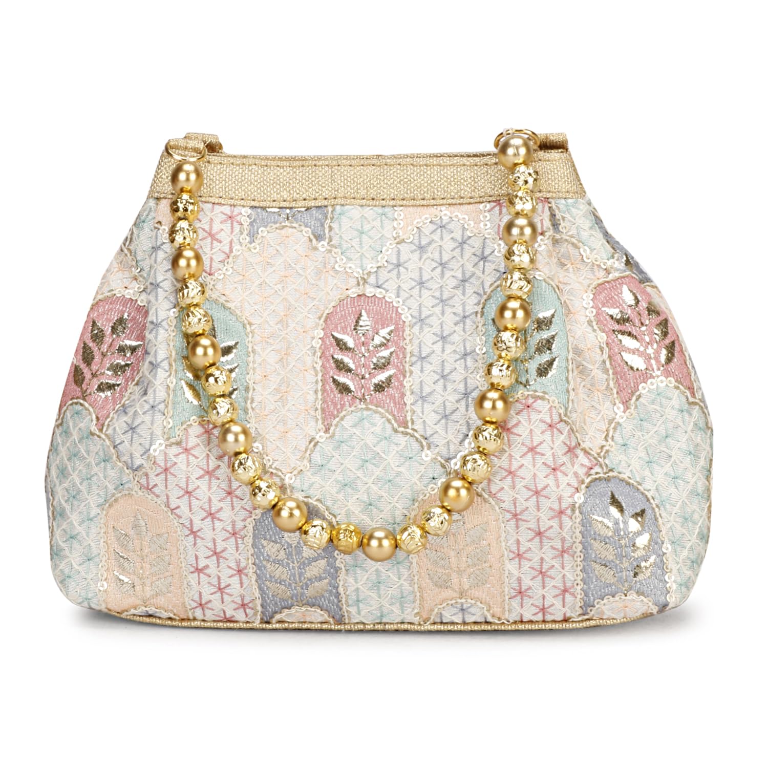 This gorgeous evening bag is perfect for any formal occasion. The bag is made of febric-quality velvet and is adorned with beautiful The bag has a spacious interior that can hold all of your essentials, including your phone, lipstick, keys, and cash. The bag is available in a variety of colors, including black, red, and blue, so you can choose the one that best suits your style. Whether you're going to a wedding, a party, or a night out on the town, this potli bag is the perfect accessory to complete your look.