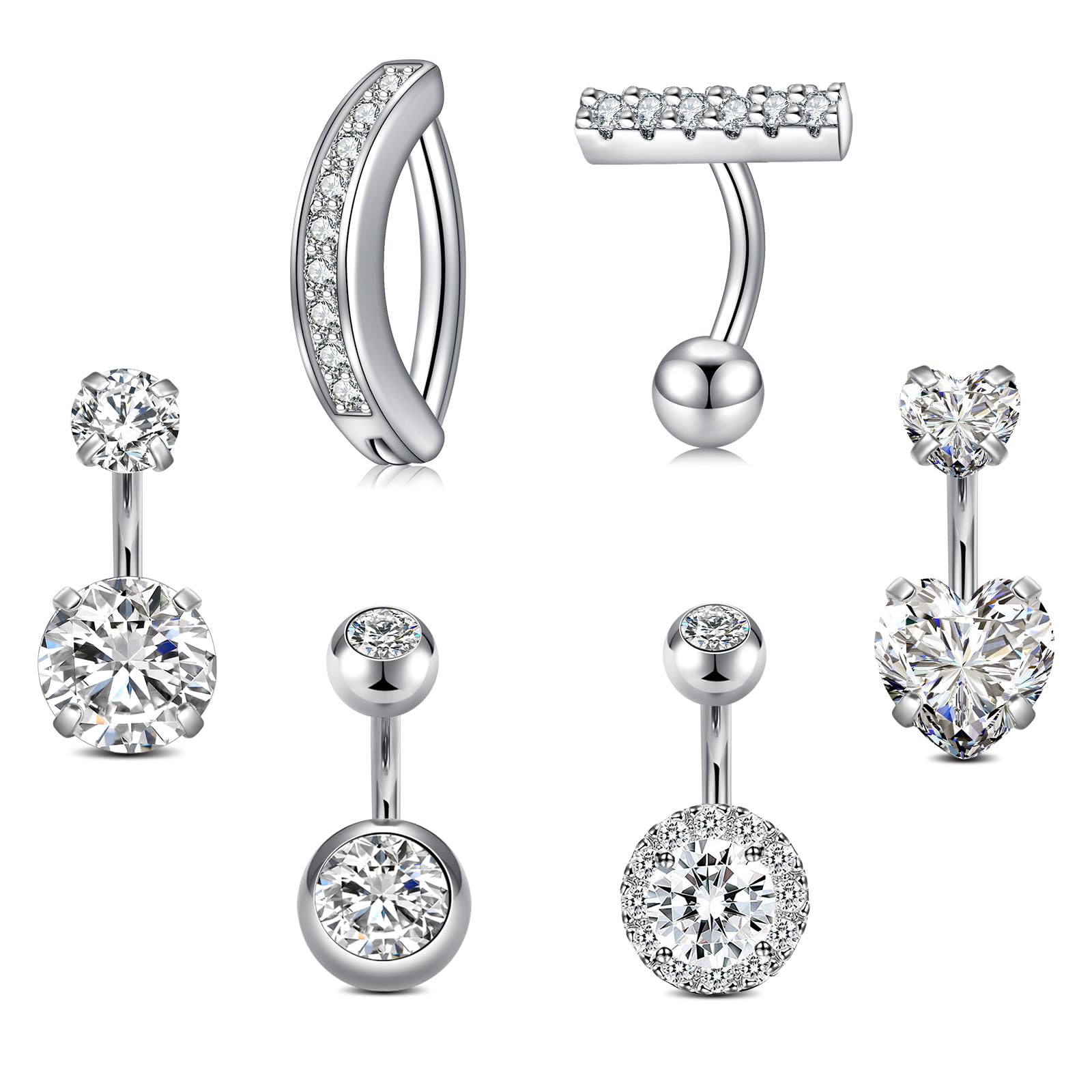 Longita Belly Button Ring Surgical Steel Belly Rings for Women Short Bar Belly Button Rings 6mm Belly Button Piercing Clicker Belly Button Ring Belly Piercing Small Navel Rings Silver