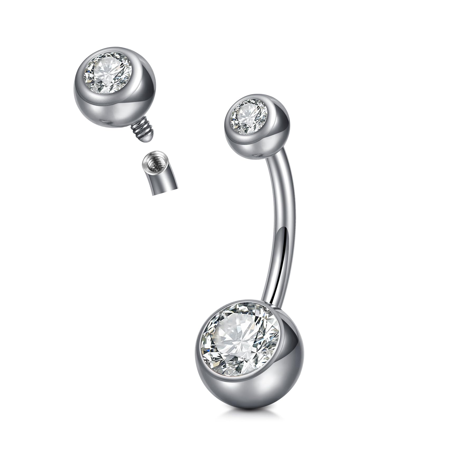 Longita Titanium Belly Button Rings Titanium Belly Ring 10mm Belly Button Ring Long Bar Implant Grade Titanium Belly Ring Gem Belly Rings for Women Surgical Steel Belly Button Piercing Silver 1/2"