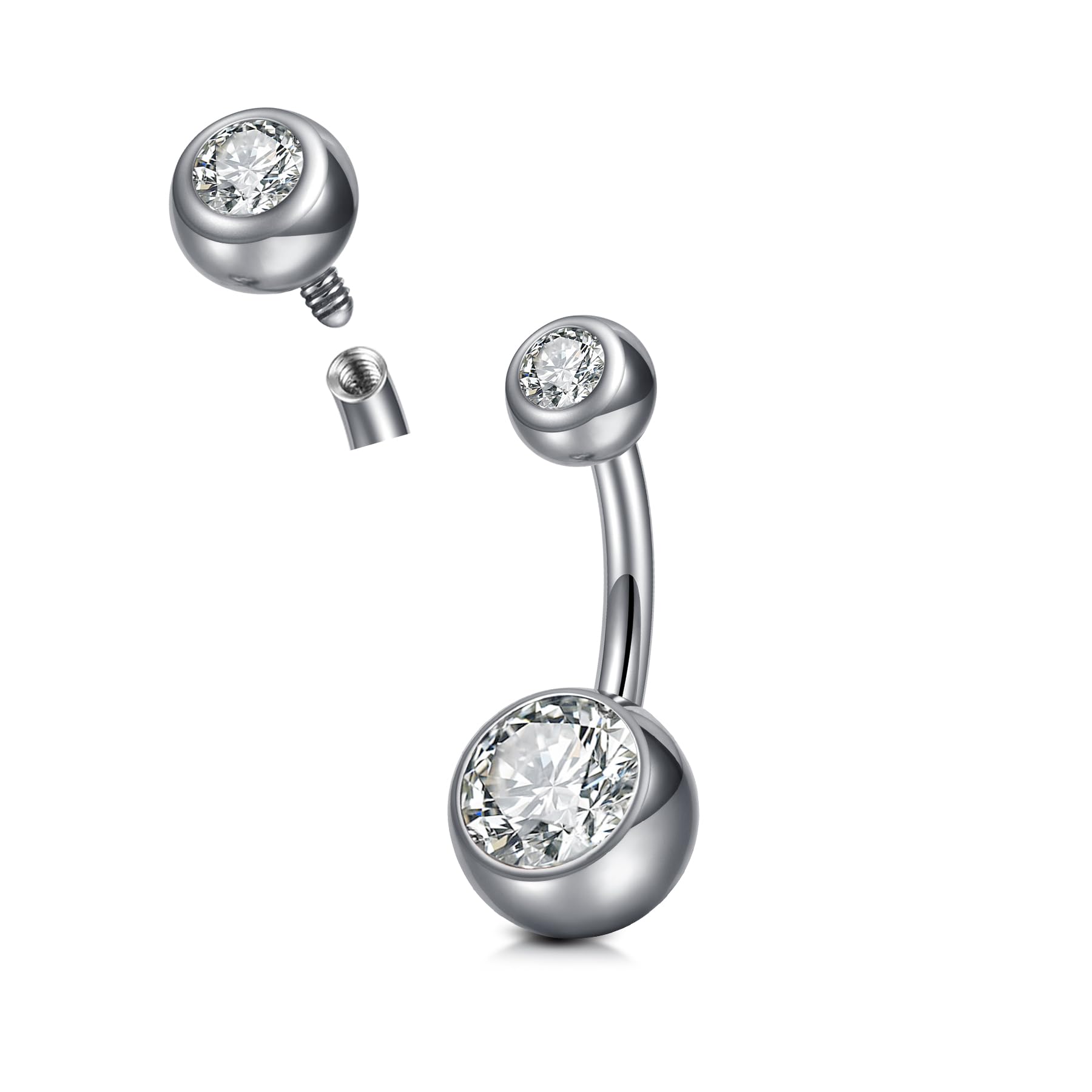 Longita Titanium Belly Button Rings Titanium Belly Ring Internal Threaded Implant Grade Titanium Belly Ring 6mm Short Bar Gem Belly Rings for Women Surgical Steel Belly Button Piercing Silver 1/4"
