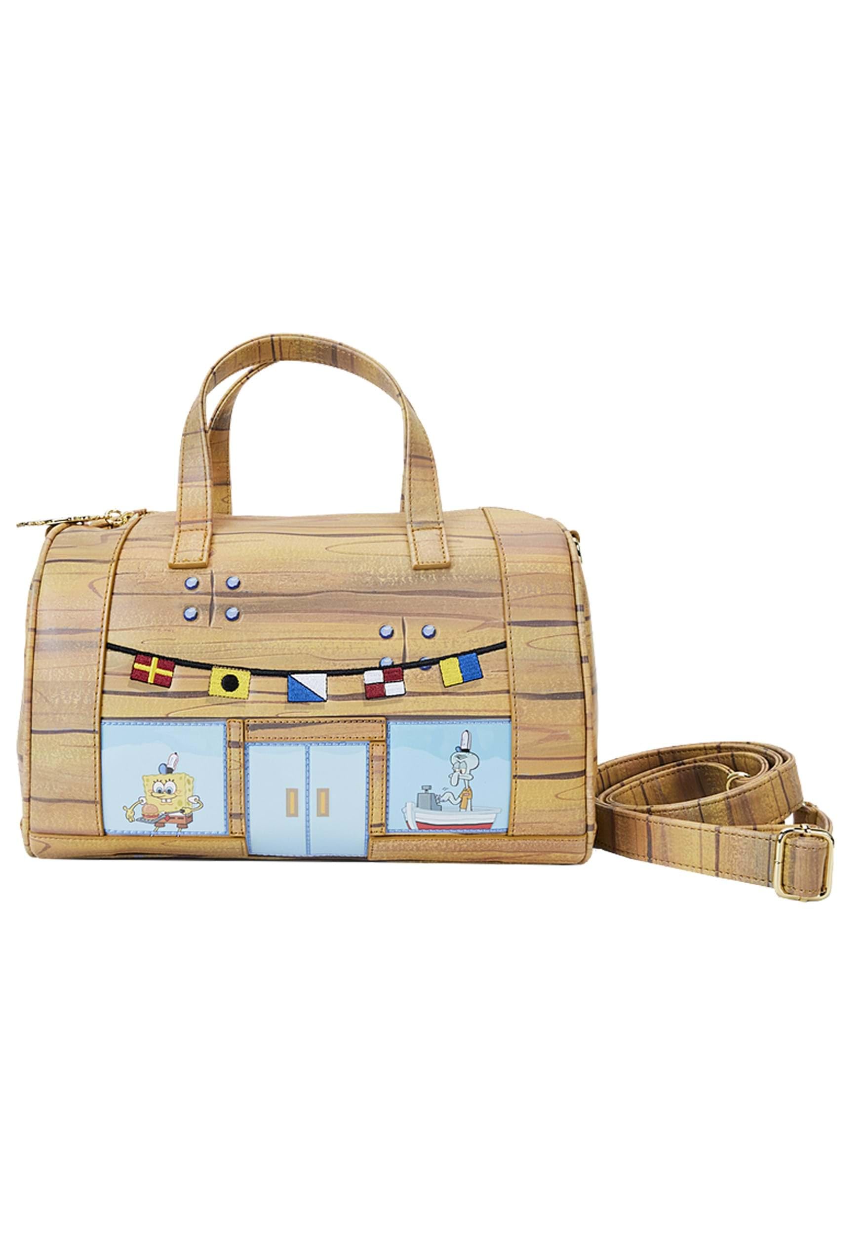 DescriptionEnter the whimsical world of Bikini Bottom with the Loungefly Nickelodeon Spongebob 25th Anniversary Krusty Krab Crossbody Bag! Made from vegan leather with intricate applique, debossed, PVC, net, and printed details, this officially licensed bag is a must-have for any SpongeBob fan. The enamel zipper charm adds a touch of charm, while the top handles and removable, adjustable shoulder straps offer versatile carrying options. Perfect for fans ages 8 and up, this bag measures 11 inches in width, 7 inches in height, and 5.5 inches in depth. Get ready to show off your love for SpongeBob in style! Celebrate 25 years of SpongeBob SquarePants with this Krusty Krab Crossbody Bag, a tribute to everyone's favorite undersea eatery. The detailed design captures the essence of the iconic restaurant, from the netting to the printed details. The enamel zipper charm adds a fun touch, while the top handles and removable, adjustable shoulder straps ensure comfortable carrying. Officially licensed and suitable for fans aged 8 and up, this crossbody bag measures 11 inches in width, 7 inches in height, and 5.5 inches in depth. Dive into nostalgia and carry a piece of Bikini Bottom wherever you go! - Crossbody Bag - Shoulder Strap