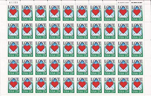 Country: United States, Year of Issue: 1992, Type: 50 Stamp Sheet, Topic: Love, Heart, Envelope, Catalog #: Scott 2618