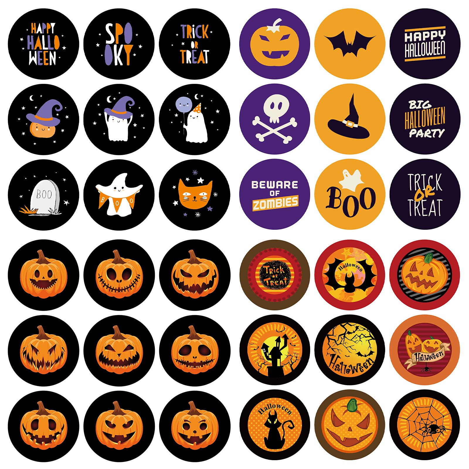 Lucleag 360 Pieces Halloween Round Stickers, Assorted Pumpkin Ghost Bat Trick-or-Treat Stickers for Candy Goodie Envelope, Halloween Packing Sealing Stickers Halloween DIY Gift Candy Wrap Decor