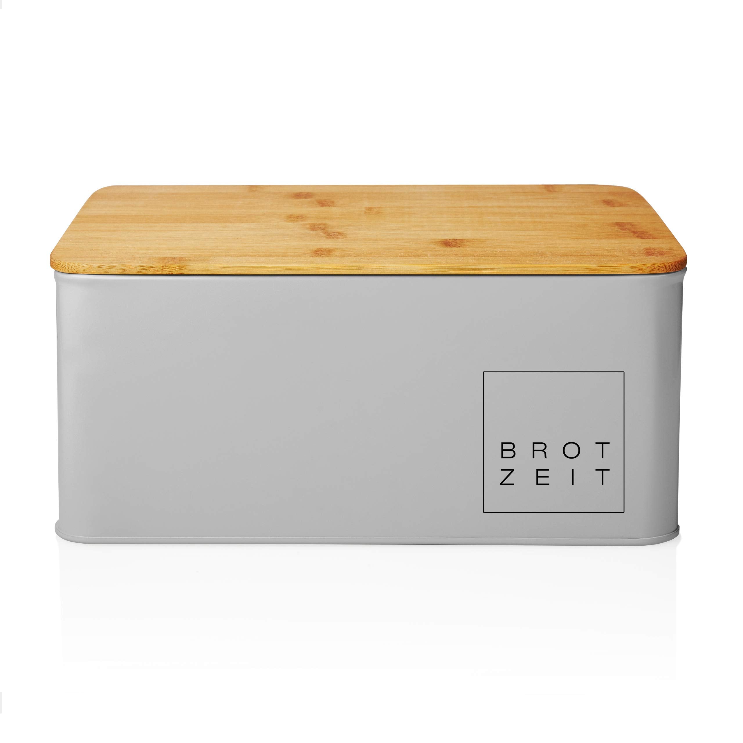 Lumaland Cuisine Bread Bin | Metal Bread Box with Bamboo Lid | Rectangular Bread Box 30,5 x 23,5 x 14 cm | 2in1 Bread Bin & Cutting Board [Light Grey]