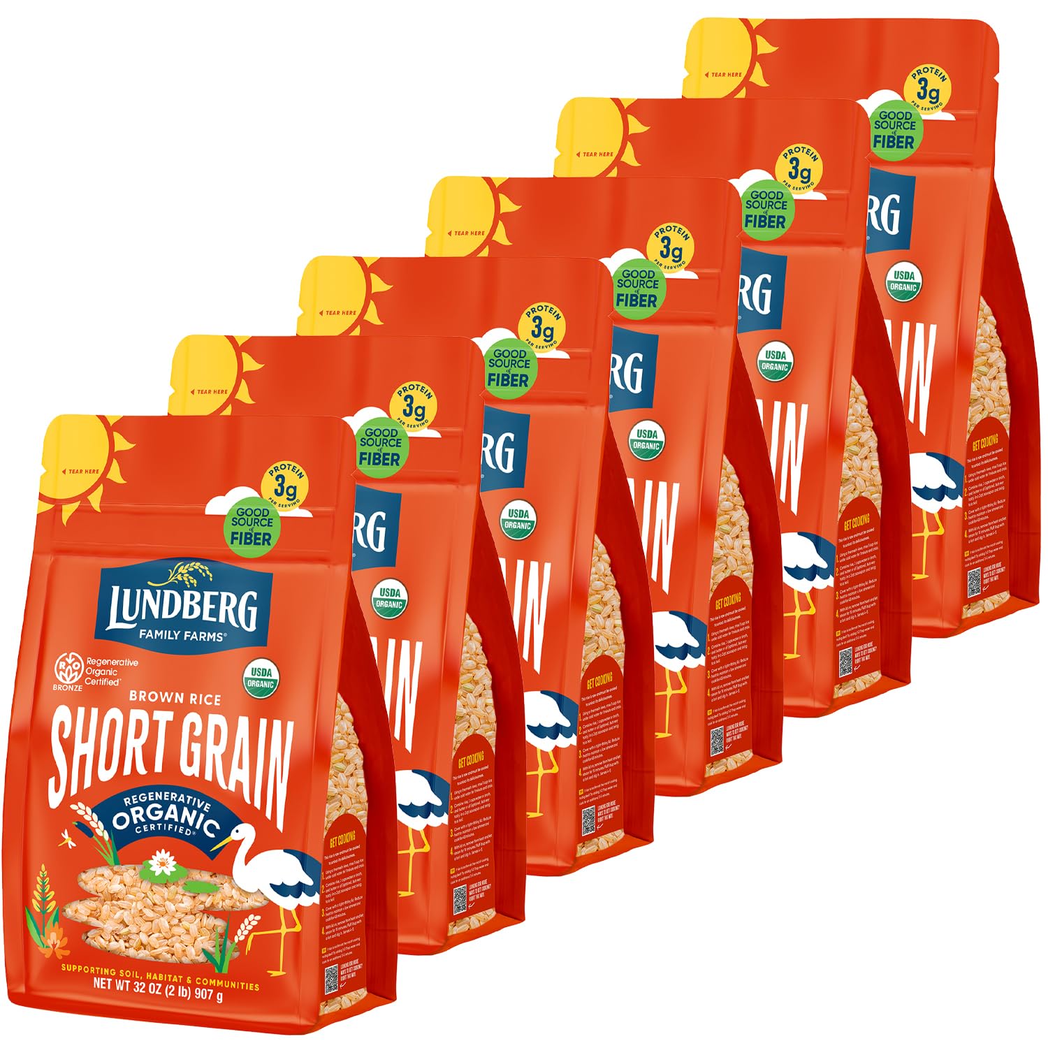 Since 1937, Lundberg Family Farms has been growing wholesome, great-tasting rice while tending to soil, air, water, and wildlife as carefully as our crops. Some people say we're a bit unconventional. But doing things our way-sustainably at every step-allows us to make better food for your table while leaving a better world for the next generation. Grown with earth-preserving practices, our 20+ rice and quinoa varieties are cultivated to maximize the flavor of each tiny grain. Long, short, black, brown, white, red, and blended. Each variety brings something different to the table so you can get creative in the kitchen. Enjoy the whole-grain goodness of Lundberg Brown Short Grain Rice. A pantry staple, it clings together when cooked. Its subtle, nutty aroma and flavor make it versatile-perfect for rice bowls and other everyday dishes that call for a soft, supple texture. Hungry for more? Look for other great-tasting side dishes, entrees, snacks, and packaged rice and quinoa varieties from Lundberg Family Farms. Good from the grain up!