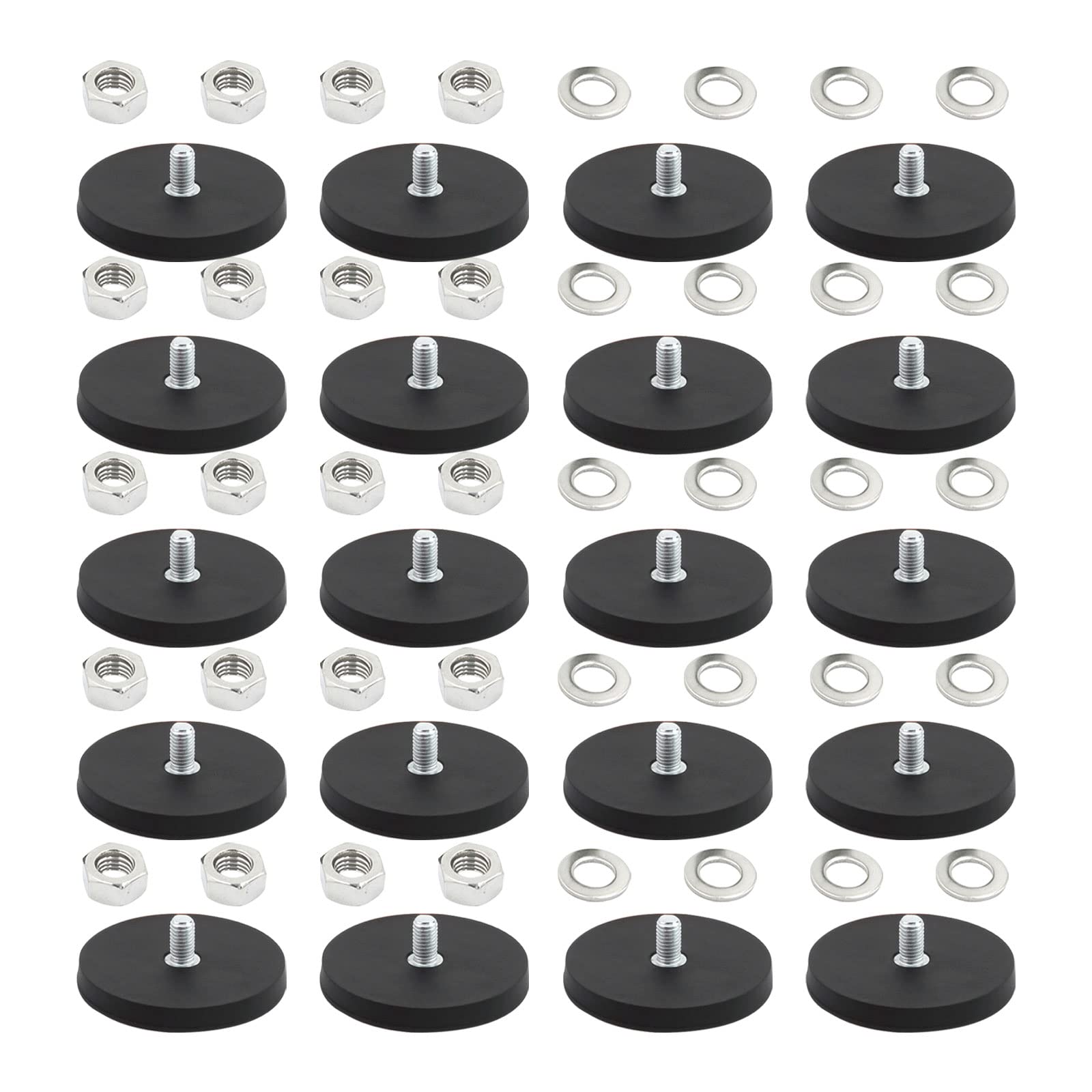 luolety Neodymium Mounting Magnets, 20 Pcs Anti-Scratch Rubber Coated Magnet with M6 Male Threaded Stud and Nuts, Strong Monting Round Magnet Brackets Holder
