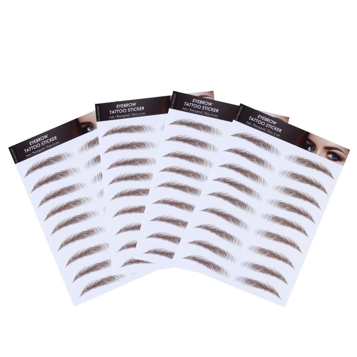 Lurrose 4 Sheets Eyebrow Tattoo Stickers, 6D Hair- Tattoos Stickers Eyebrows Tattoo Peel Off Natural False Eyebrow Makeup Sticker for Makeup Supplies, Brown 03