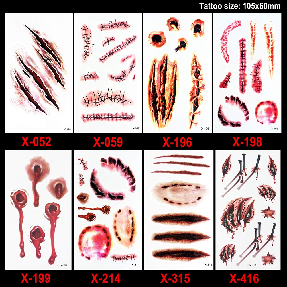 Lurrose 9 Sheet Scarred Temporary Tattoo Waterproof Bleeding Scar Tattoos Stickers for Halloween Cosplay Makeup