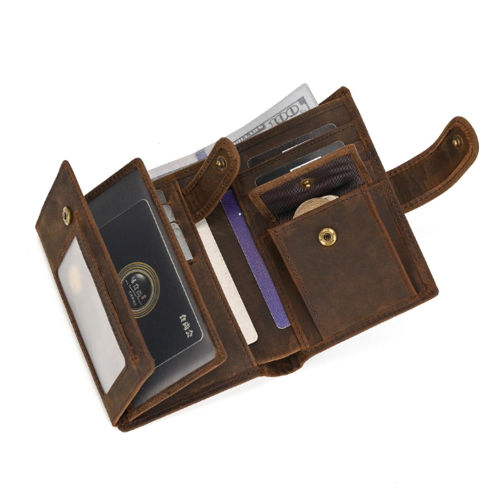 LUUFAN Mens Wallet with Chain Genuine Leather Double Zipper Bifold Wallet Coin Pocket Cash Credit Card Holder Purse, Brown