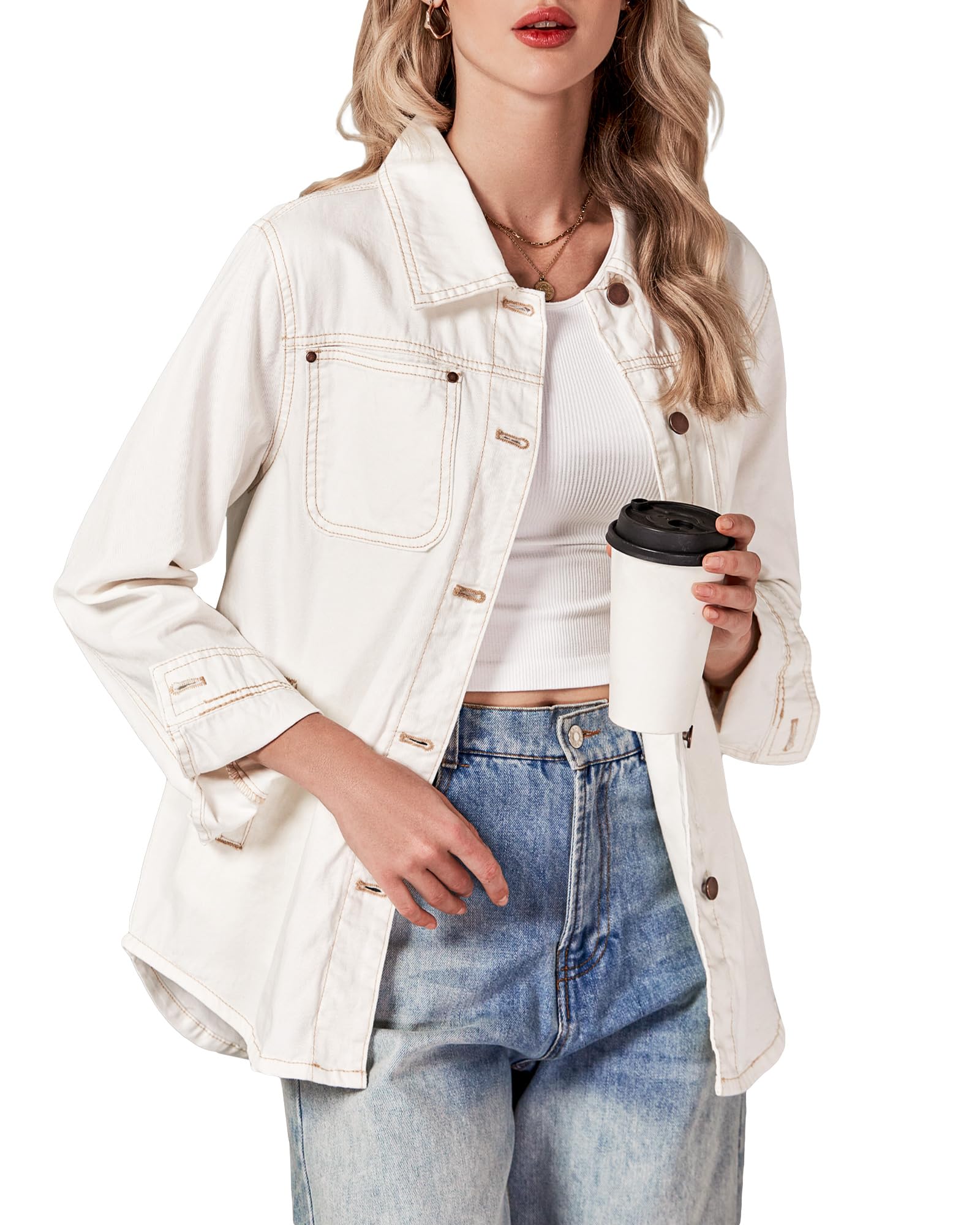 luvamia Women's Fashion Casual Button Down Denim Jacket For Women Jean Jacket For Women Trendy Women's Denim Jacket Women's Casual Jackets Jacket For Women Ivory White Size Large Fits Size 12 Size 14