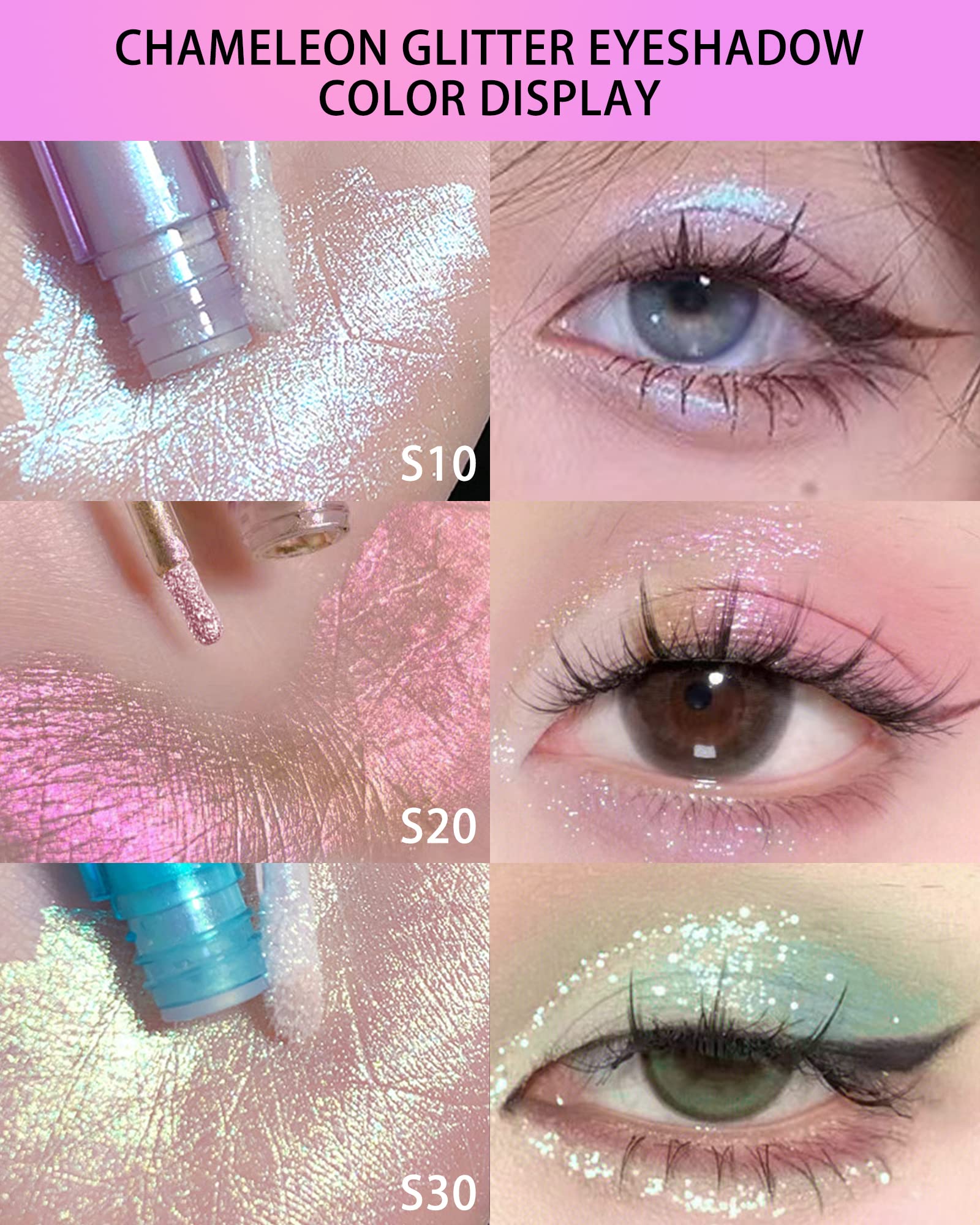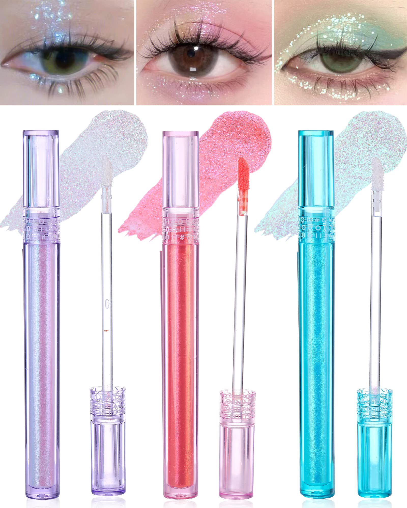 prime Liquid Glitter Eyeshadow,Korean Eye Makeup, 3 Colors Metallic Liquid Chameleon Eye Shadow, Multi-Dimensional Eye Looks, High Pigmented Quick Drying Long Wearing Eyeshadow Kit, Color Shifting Iridescent Long-lasting Holographic Glitter Multichrome Eye Makeup, St. Patricks Day green eye makeup Mother's Day Nurse Week Gift for Girl Women
