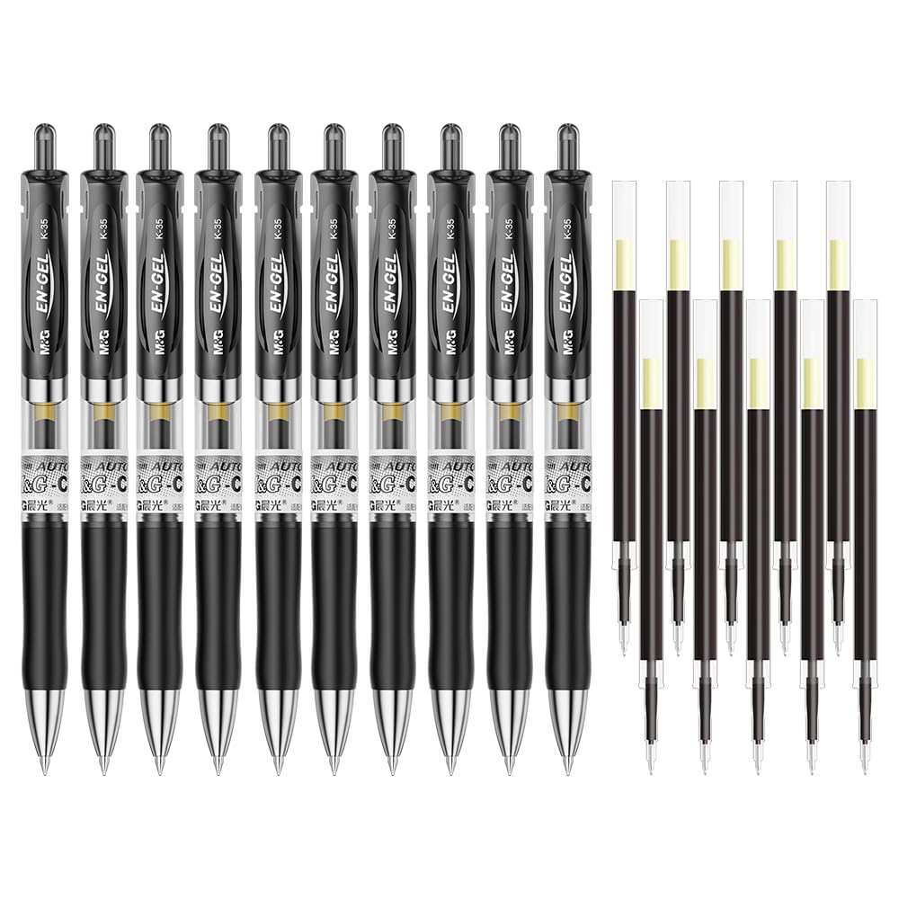 This M&G 10PCS black gel pen set comes with 10 refills, providing you with a total of 20 writing tools. The pens feature a medium point tip, which is perfect for everyday use, such as taking notes, writing letters, or journaling. The gel ink is smooth and flows effortlessly onto the paper, making it easy to write with. The pens are retractable, so you can easily keep them handy in your bag, pocket, or desk drawer. The ergonomic design of the pens ensures a comfortable grip, even during long periods of writing. The set includes a variety of colors, so you can easily color-code your notes or documents. The ink is smudge-proof and fade-resistant, so your writing will remain legible for years to come.