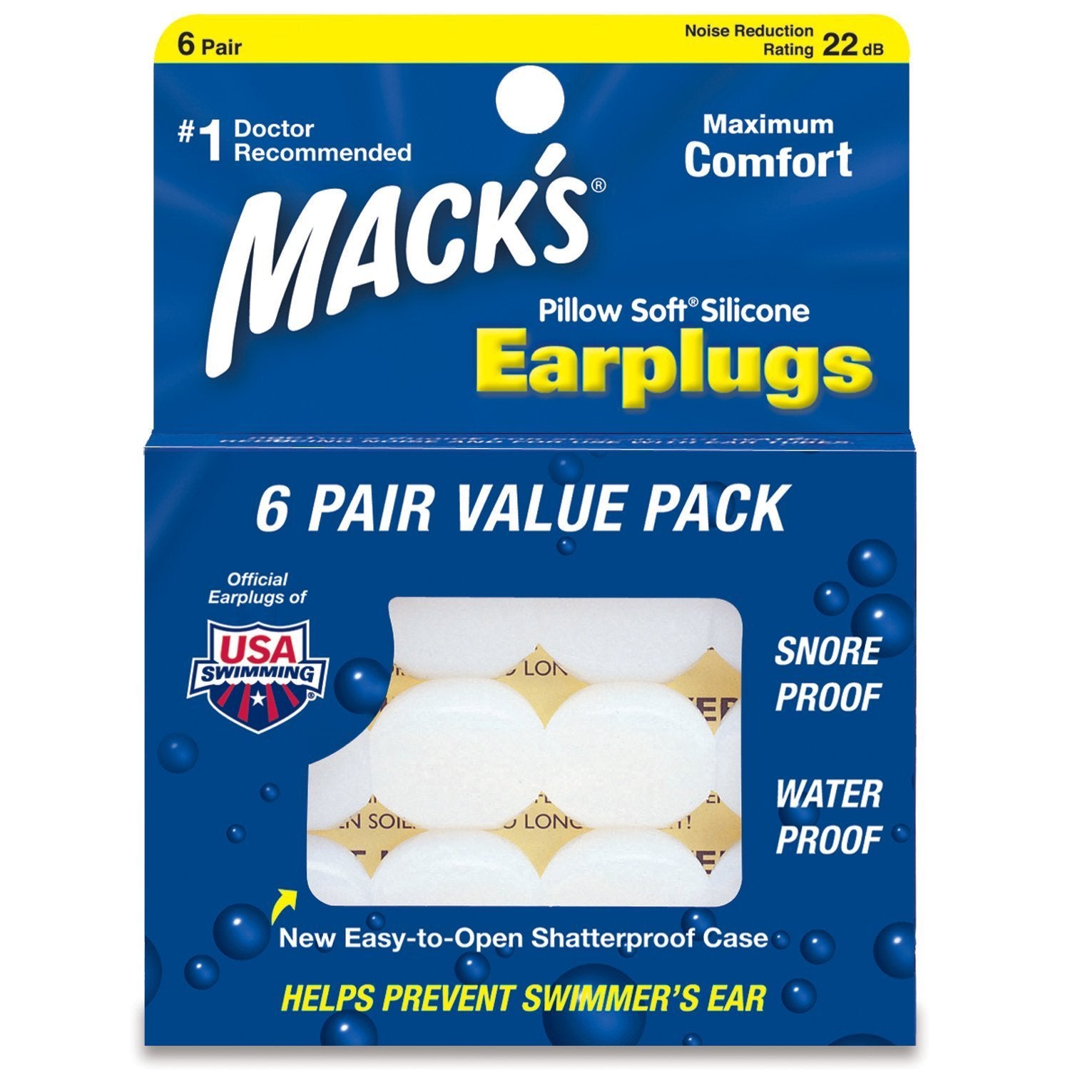 MACK'S Pillow Soft Silicone Mouldable Earplugs 1 x Value Packs (6 Pairs)