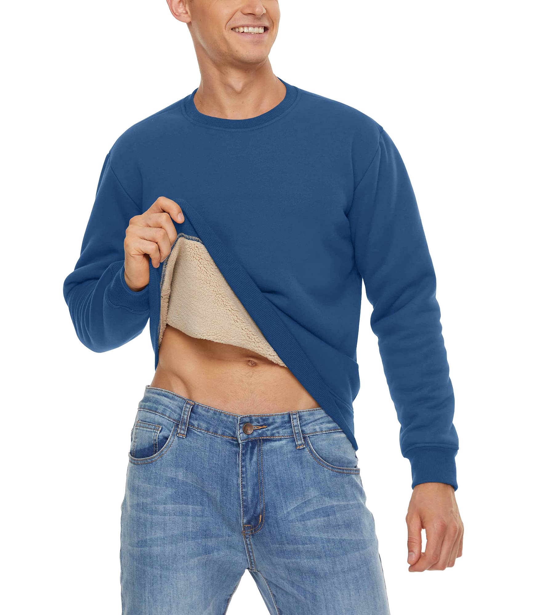 MAGCOMSEN Mens Sweatshirts Round Neck Warm Underwear Baselayer Tops Mens Jumper Sweater Casual Pullover Cotton Breathable Comfy Sweatshirts Thick Baselayer Top Mens Winter T-Shirts, Grey Blue
