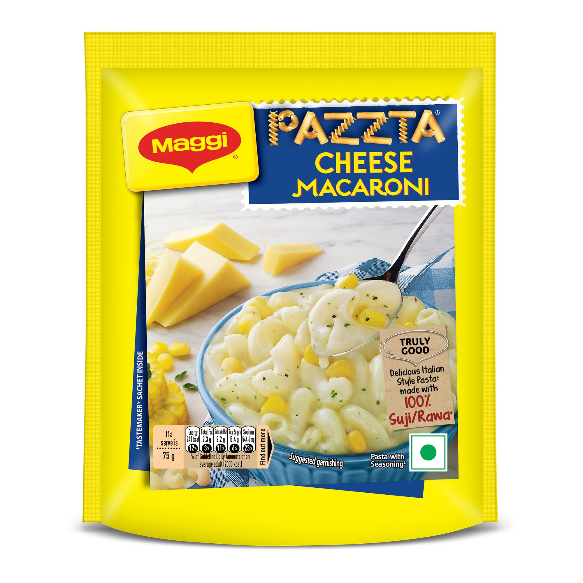 Nutri-licious PAZZTA- an offering to delight your every sense and make youfall in Love! Maggi Nutri-licious Pazzta Cheese Macaroni comprises dried pastaand a cheese based powder. The pasta is made from 100% semolina and is claimedto provide a good source of fibre and protein. It is suitable for vegetariansand can be ready in just five minutes. This product is free from added MSG andretails in a 70g pack.