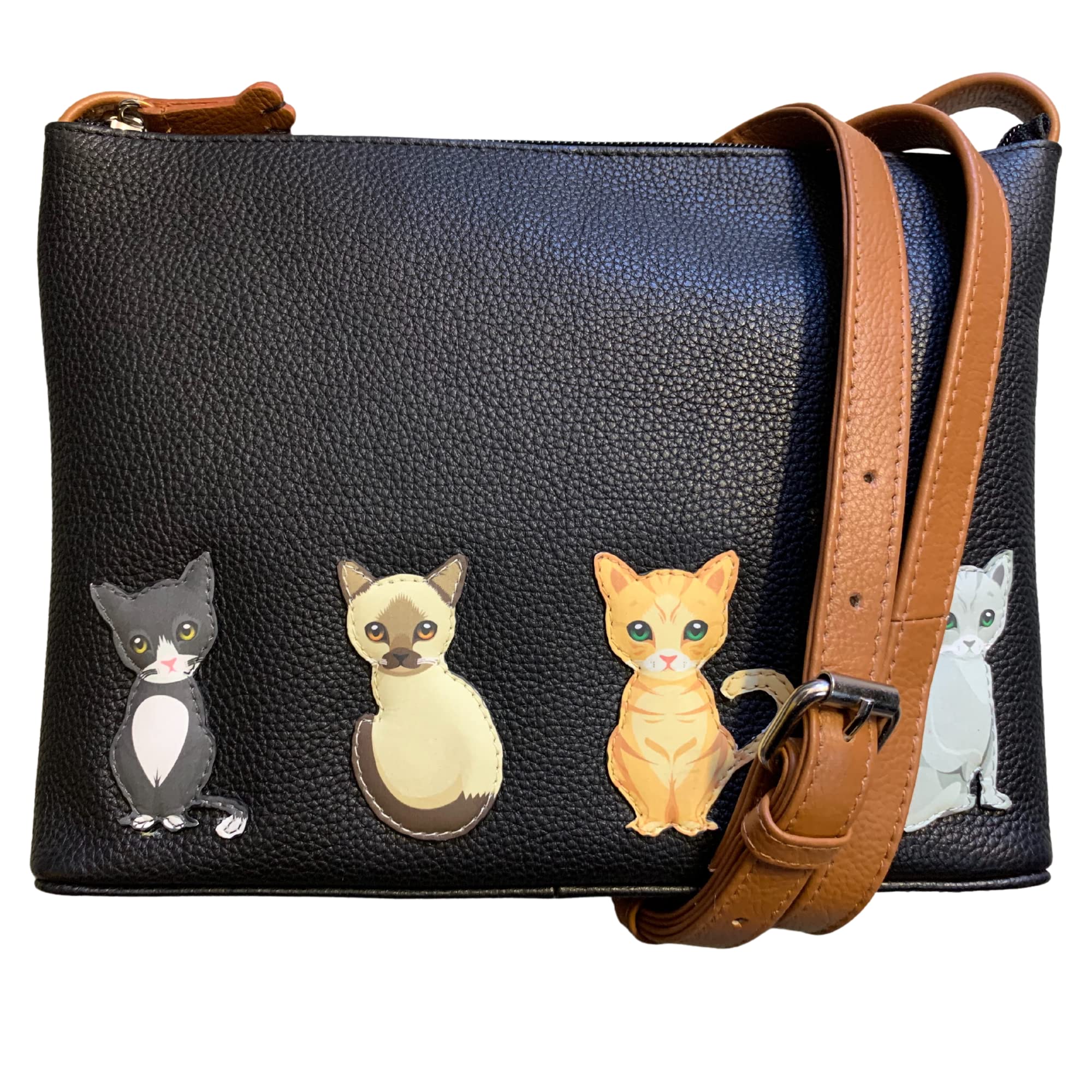 Leather Crossbody/ shoulder bag with a cute cat applique handstitched to the front