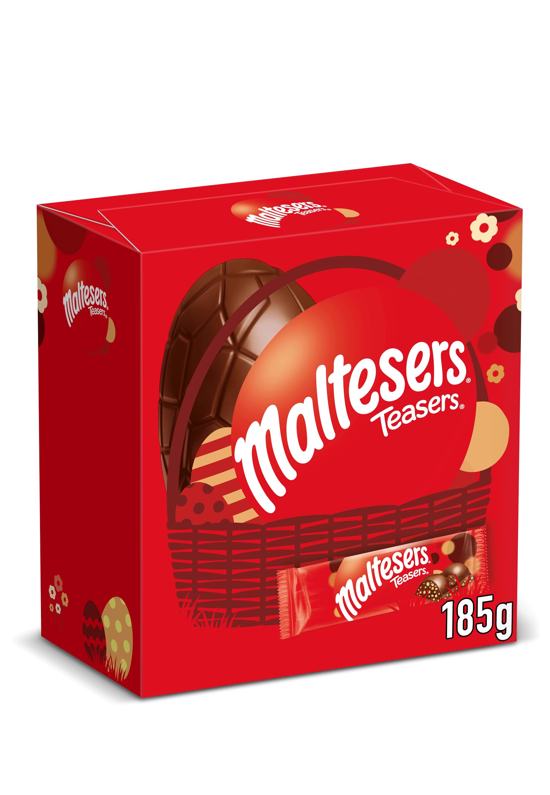 DescriptionProduct DescriptionMay your Easter be as filled with crunchy delight as this Easter egg. Alongside the milk chocolate egg, you’ll find a pair of Maltesers Teasers chocolate bars, combining smooth milk chocolate with mini balls of crunchy malt. Delicious. If the Easter Bunny’s plotting an Easter egg hunt this year, this exceptional chocolate egg would make a terrific grand prize. Or make your Easter weekend a giggle by sharing this easter egg with friends. Suitable for vegetarians. A case with a hollow milk chocolate Easter egg with two 35g Maltesers Teasers chocolate bars. 4 x 220g. 10% less cardboard compared to the equivalent pack in our Easter 2021 range. This Easter egg carton is fully recyclable at your local recycling centre or placed in your domestic recycling collection box. To recycle the foil please ask your local recycling centre for details.IngredientsHollow Egg: Sugar, Skimmed MILK Powder, Cocoa Butter, Cocoa Mass, Palm Fat, MILK Fat, LACTOSE, Whey Permeate (from MILK), Emulsifier (SOYA Lecithin), Vanilla Extract, Milk Chocolate contains Milk Solids 14% minimum and Cocoa Solids 25% minimum, Milk Chocolate contains Vegetable Fats in addition to Cocoa Butter. Maltesers Teasers: Sugar, Cocoa Butter, Skimmed MILK Powder, Cocoa Mass, Glucose Syrup, Palm Fat, BARLEY Malt Extract, MILK Fat, LACTOSE, Whey Permeate (from MILK), Emulsifier (SOYA Lecithin), WHEAT Flour, Raising Agents (Calcium Phosphates, Sodium Carbonates, Potassium Carbonates), WHEAT Gluten, Whey Powder (from MILK), Salt, Vanilla Extract, Milk Chocolate contains Milk Solids 14% minimum and Cocoa Solids 25% minimum, Milk Chocolate contains Vegetable Fats in addition to Cocoa Butter Sugar, Cocoa Butter, Skimmed MILK Powder, Cocoa Mass, Glucose Syrup, Palm Fat, BARLEY Malt Extract, MILK Fat, LACTOSE, Whey Permeate (from MILK), Emulsifier (SOY Lecithin), WHEAT Flour, Raising Agents (Calcium Phosphates, Sodium Carbonates, Potassium Carbonates), WHEAT Gluten, Whey Powder (from MILK) , Salt, Vanilla Extract, Milk Chocolate contains Milk Solids 14% minimum and Cocoa Solids 25% minimum, Milk Chocolate contains Vegetable Fats in addition to Cocoa ButterManufacturer Contact InformationGB: Freepost Mars Wrigley Confectionery UK Ltd. IE: Mars Foods Ireland Ltd, PO Box 3856, Dublin 4.