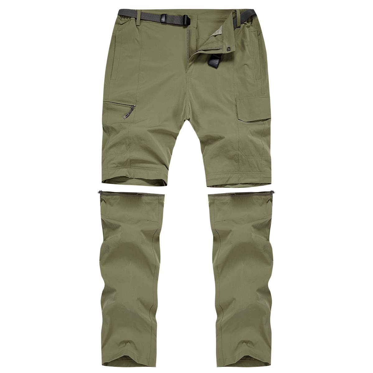 MANSDOUR Men's Hiking Pants Convertible Quick Dry Lightweight Zip-Off Outdoor Work Pants Waterproof Tactical Cargo Fishing Mountain Travel Trousers Breathable Casual Camping Safari Pants Green