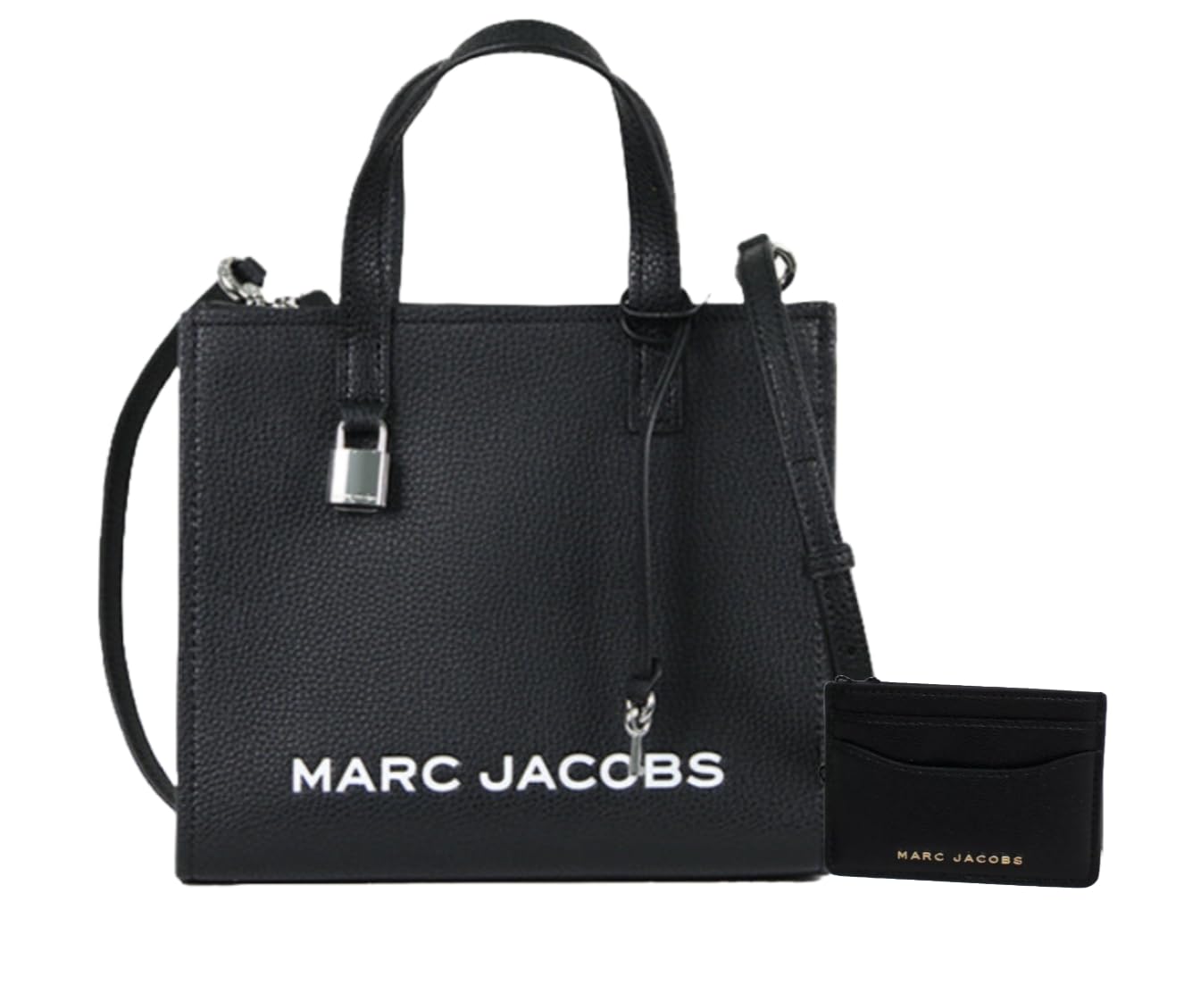 Lock and key charms adorn a coated leather tote with asymmetrical inner compartments and a center zip pocket.