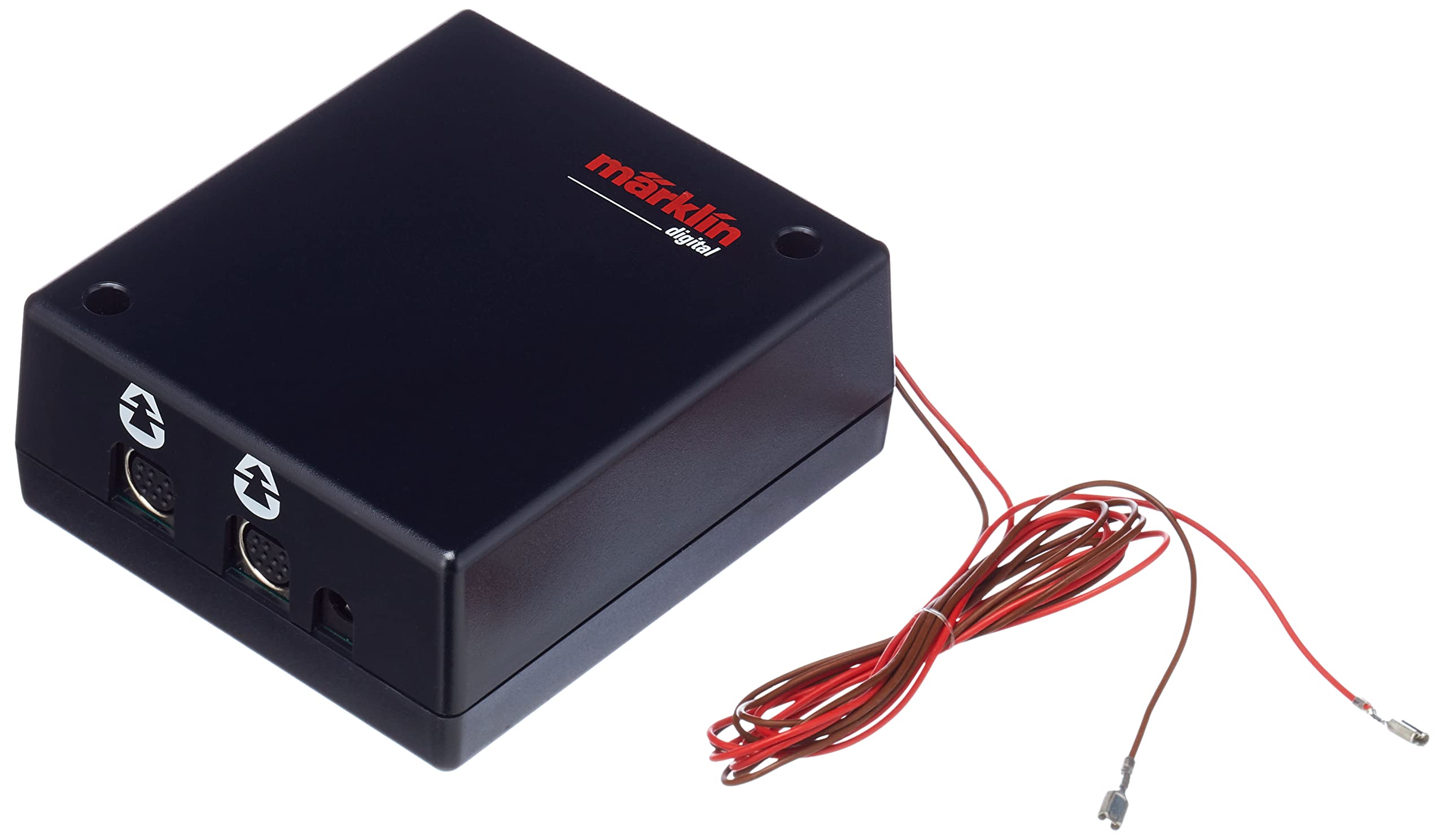 Märklin Digital Junction Box Track H0. For connecting a switching power supply 66361 and up to 2 mobile stations (60657 or 60653 / Trix 66955 or 66950). Suitable for gauges Märklin H0, Trix H0 and Minitrix. Dimensions: 96 x 85 x 40 mm.