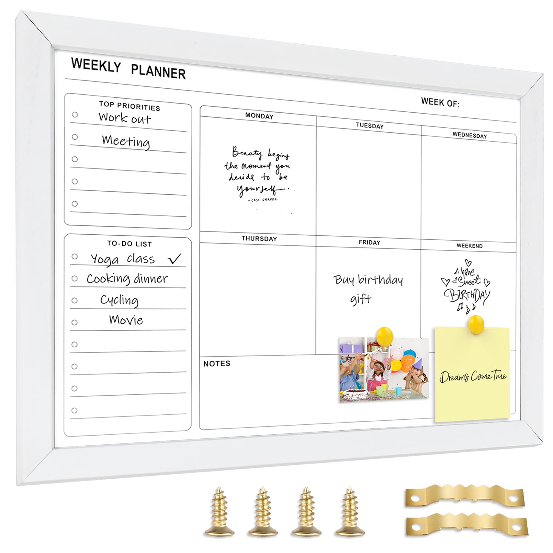 1. Dry erase board with multifunctional partitions for weekly planning dry erase board design for wall. "To-Do List"/"Top Priorities"/ "Notes", keeping your plans in action and visible at a glance.