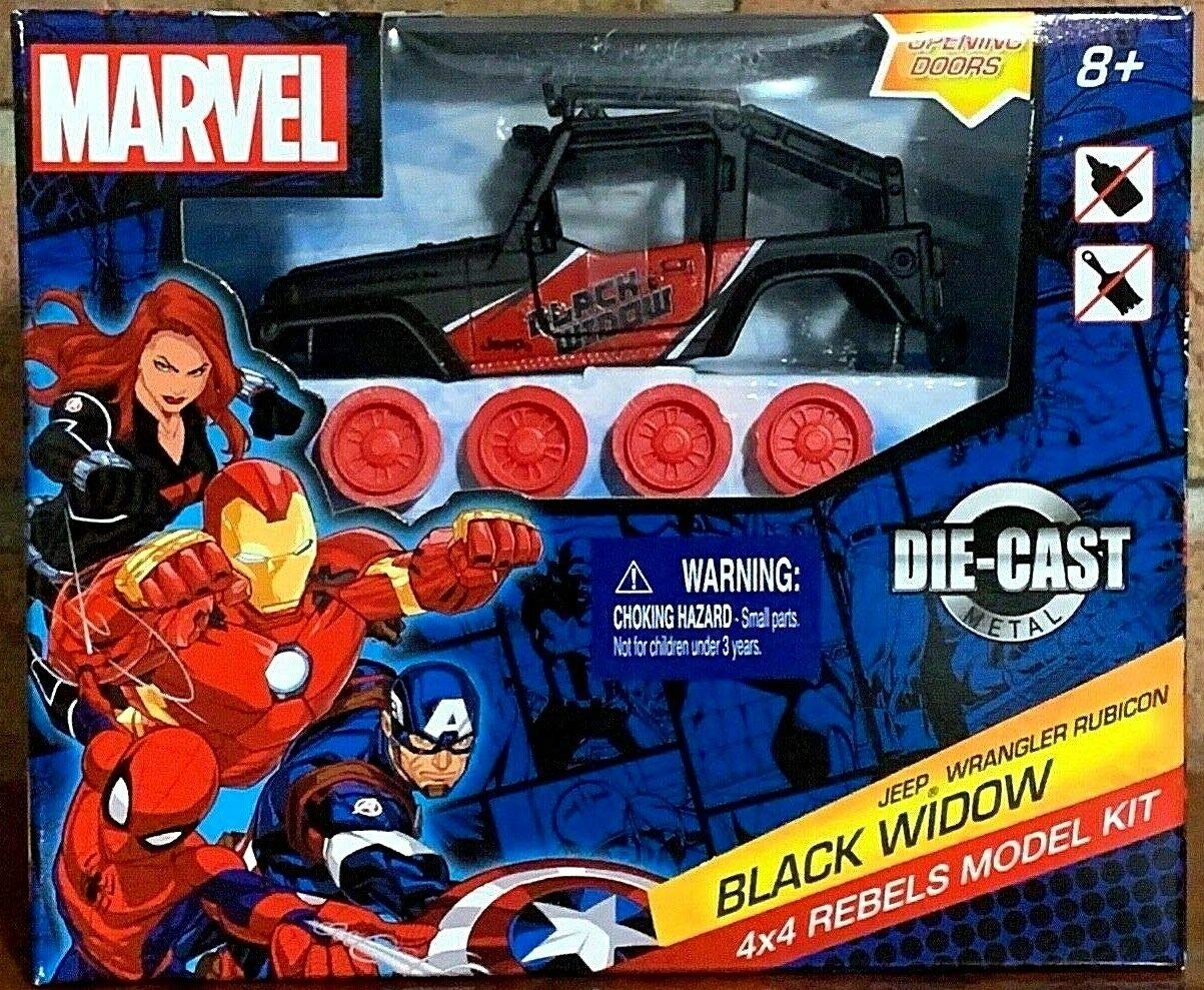 Marvel Spiderman's Black Widow Die Cast Metal Jeep Wrangler Rubicon 4X4 Rebels Model Kit , die cast car measures 4" X 2" X 2"
