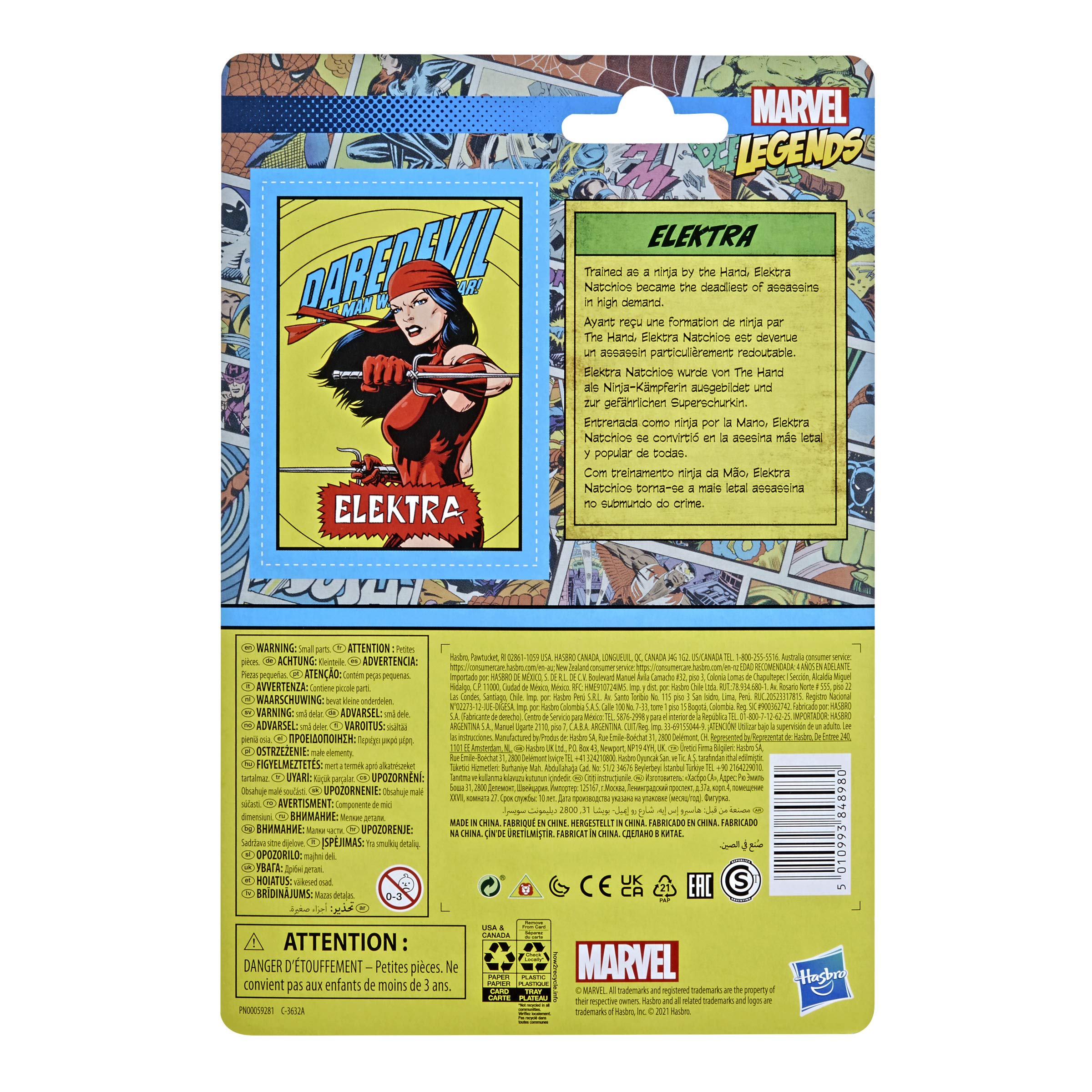 Trained as a ninja by the Hand, Elektra Natchios became the deadliest of assassins in high demand. With over 80 years of entertainment history, Marvel has become a cornerstone of fan collections around the world. With the Marvel Legends Series, fan favorite Marvel Comic Universe and Marvel Cinematic Universe characters are designed with premium detail and articulation for posing and display in collections. From figures to vehicles to premium roleplay items, the Marvel Legends Series offers elite character-inspired product for Marvel fans and collectors. Additional figures each sold separately. Subject to availability.