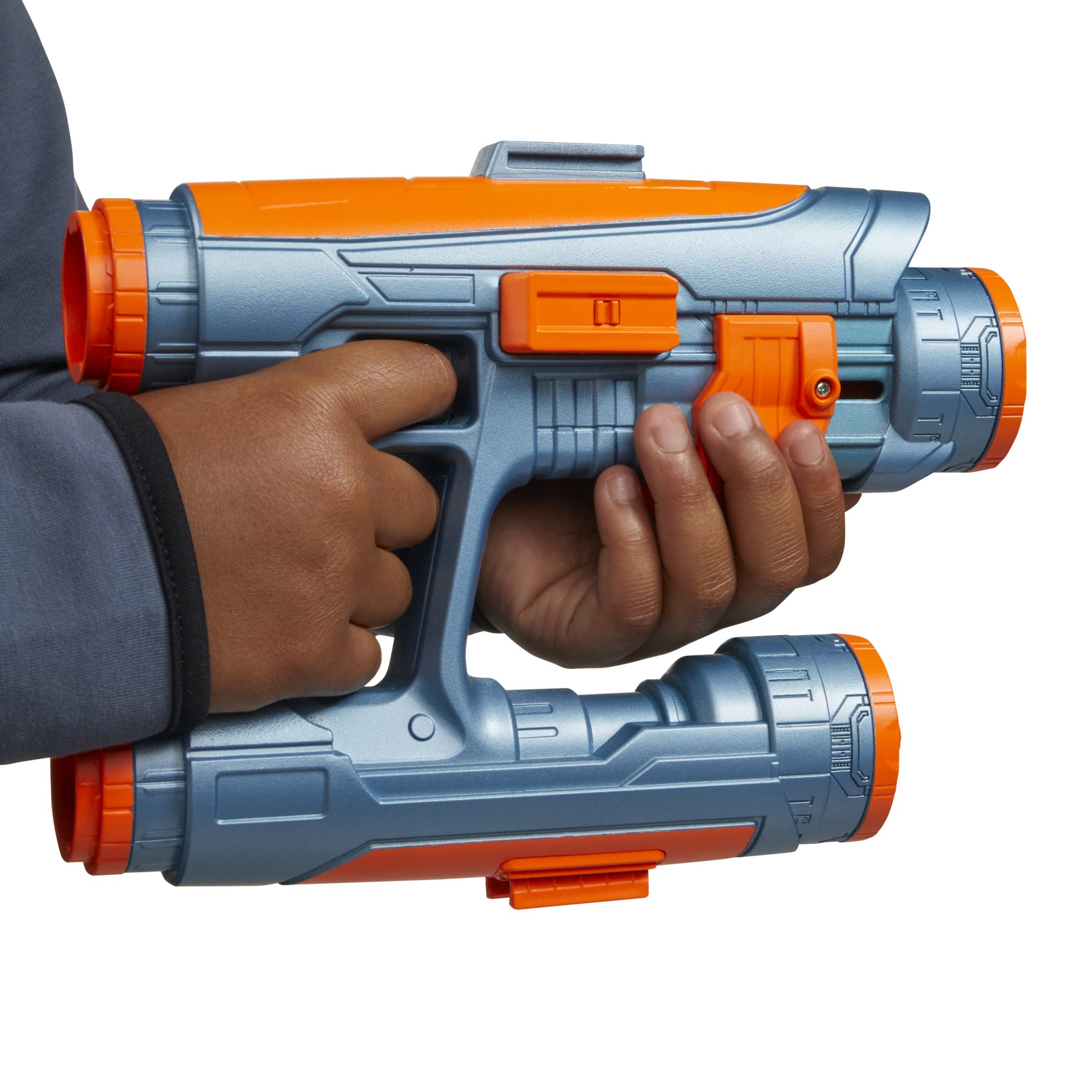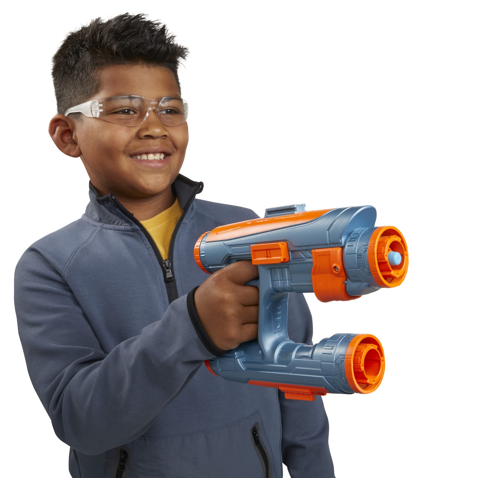 Kids ages 5 and up can play as Star-Lord as they gear up for new galactic adventures with this Star-Lord Quad Blaster! Inspired by Marvel Studios' Guardians of the Galaxy Vol. 3, Peter Quill must do whatever it takes to save a friend who's life is in danger. Kids can dress up and create their own play battles as their favorite Guardian hero! This Nerf-powered role play super hero toy includes 3 Nerf darts and an entertainment-inspired design. For kids and Marvel fans alike, this Nerf Star-Lord Quad Blaster will make a great gift, an addition to any Marvel toy collection, or even as an accessory for dressing up at the next super hero costume party! Copyright 2023 MARVEL. © 2023 Hasbro. NERF and all related terms are trademarks of Hasbro.