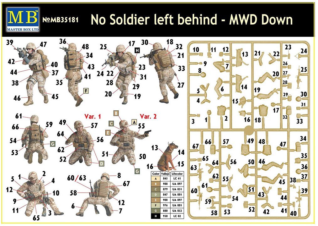 Manufacturer: Master Box (Ukraine) Code: 35162 Scale: 1/35 Material: Plastic Paint: Unpainted, Unassembled, Kit do not contain paints and glue. Condition: New in Box The kit consists of: 6 figures in different poses The average height of the figures, mm: 50