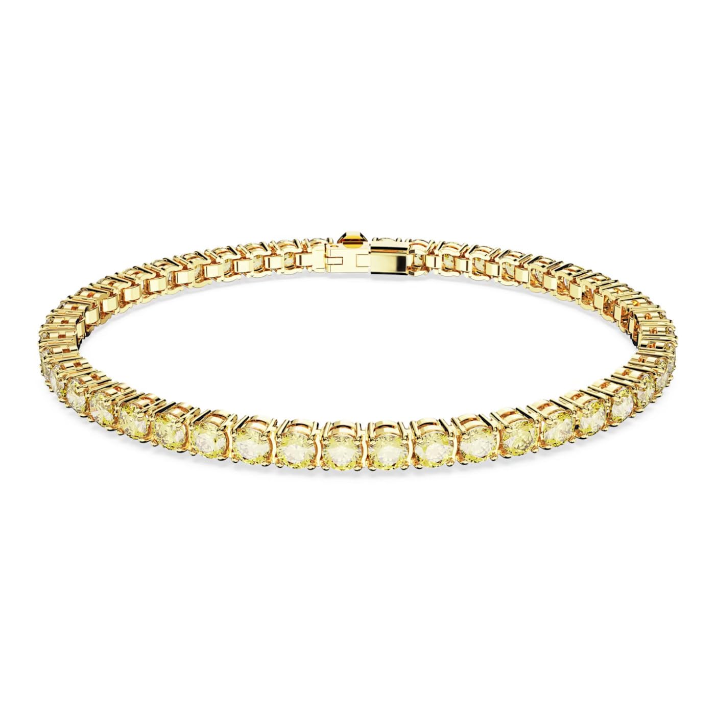 Add a sparkle of beauty to your wrist with this beautiful Matrix Tennis Family bracelet. With a fluidity of perfect shapes, the design features a row of round yellow stones on a gold plated setting to achieve a combination of the most brilliant. Wear it alone or combine it with other pieces from the Matrix Tennis family.