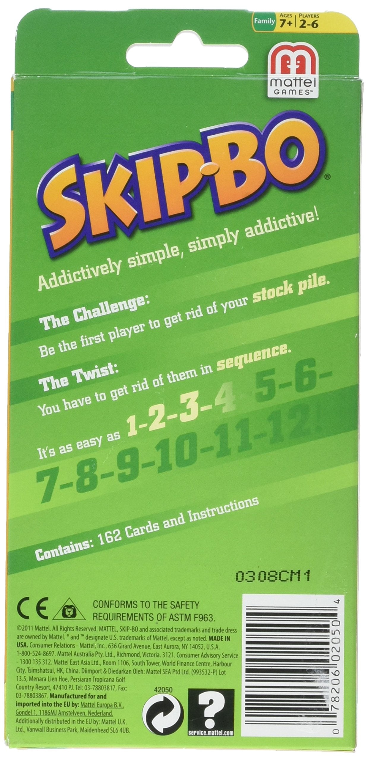 Skip-Bo is the ultimate sequencing card game! Players use skill and strategy to create sequencing stacks of cards in ascending order (2,3,4…). The Skip-Bo “wild” cards add extra twists to keep the game interesting and help you beat your opponents. The first player to use all the cards in their personal Stockpile wins!
