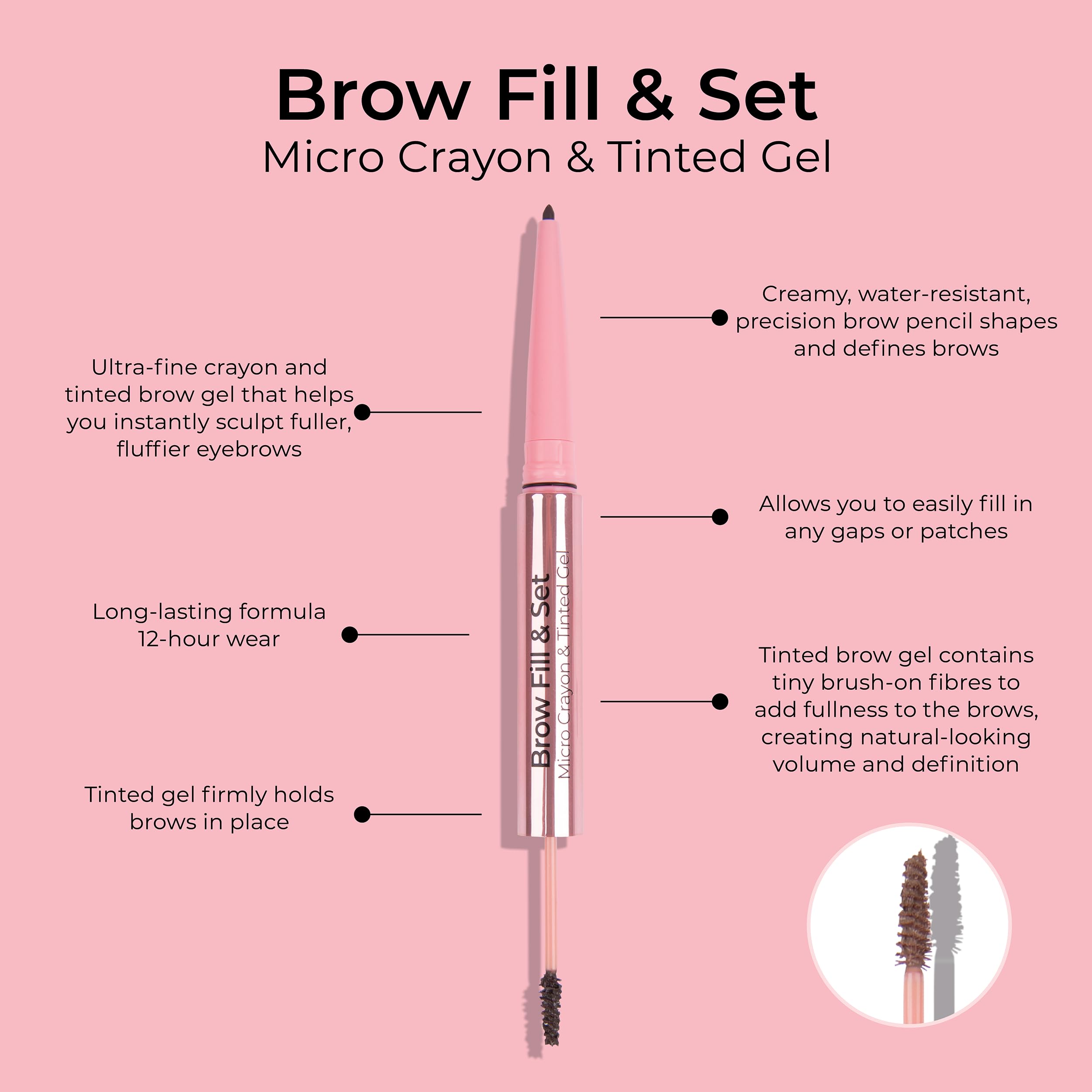 A 2-in-1 double-ended brow product, featuring an ultra-fine crayon and tinted brow gel that helps you instantly sculpt fuller, fluffier eyebrows. Creamy, water-resistant, precision brow pencil shapes and defines brows.