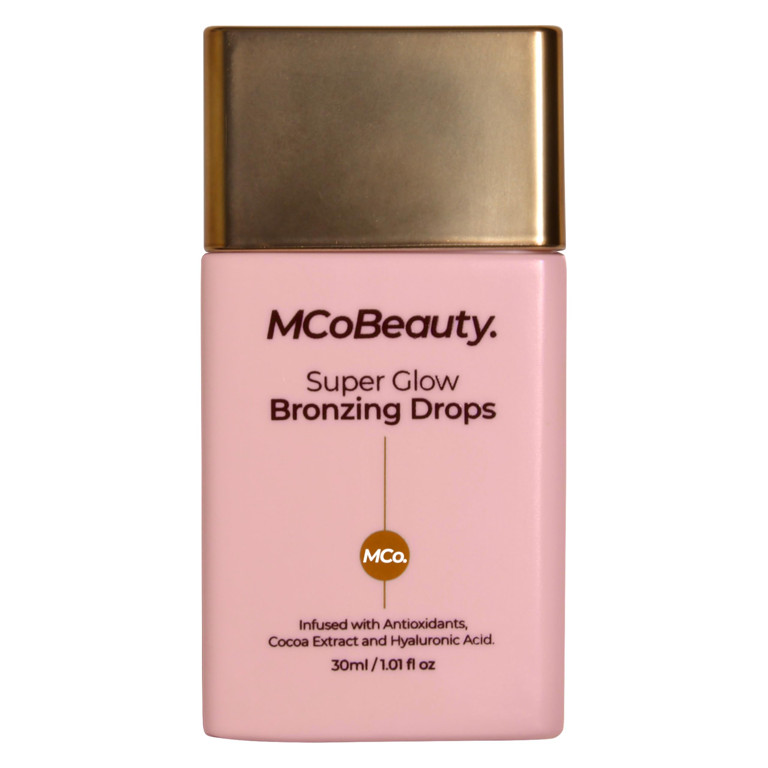 The multi-use MCoBeauty SUPER GLOW BRONZING DROPS are a weightless skincare-infused serum that hydrates while adding a warm bronze tint to your complexion. Its concentrated blend of antioxidants and skin-loving extracts support a healthy skin barrier. With ultra-nourishing Jojoba Seed Oil, Cocoa Extract, White Tea Extract and Hyaluronic Acid, your skins barrier is protected and nourished while looking effortlessly radiant. The universally flattering formula suits all complexions, adding instant radiance while protecting and hydrating your skin. This easy-to-use serum blends seamlessly with your skincare and complexion products to give a beautifully natural glowing finish to your face and body. For that endless summer natural glow, add a drop to your MCoBeauty Hydrating Day & Night Face Moisturiser, wear it under your favourite MCoBeauty foundation, or, simply apply alone for a youthful lit-from-within glow every day.