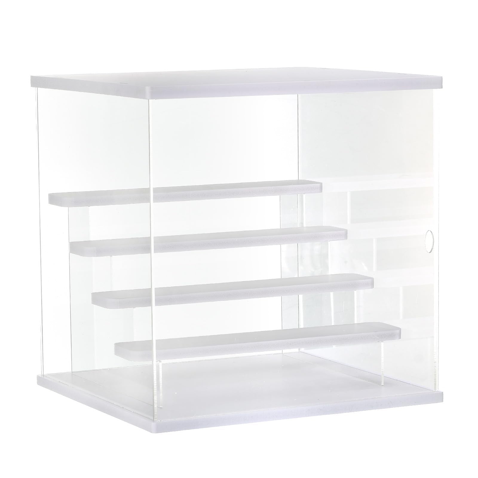 MECCANIXITY Clear Acrylic Display Case with LED Light 4 Tier Dustproof Showcase Assemble Cube Storage Boxes Stand for Collectibles, Action Figures (12.6x11.81x12.6 ) White