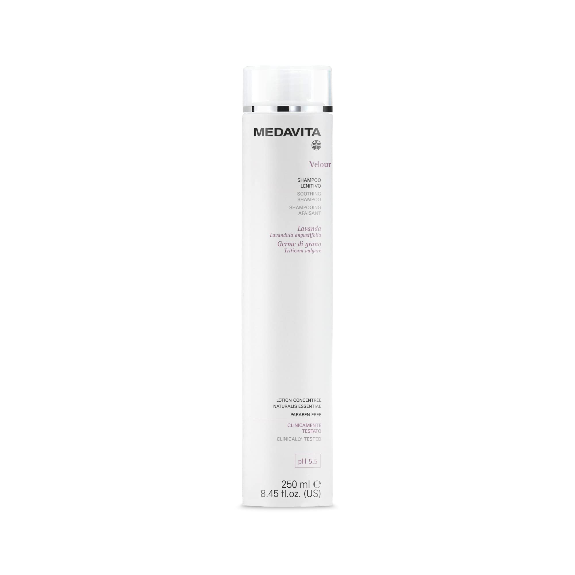 Das Velour Soothing Shampoo reinigt und eignet sich perfekt für den regelmäßigen Gebrauch. Die beruhigenden Eigenschaften von Lavendel- und Weizenkeimproteinen wirken sanft auf die Kopfhaut, beruhigen Reizungen, erzeugen ein Gefühl der sofortigen Linderung und machen das Haar weich, glänzend und leicht kämmbar. Angereichert mit Allantoin mit hervorragenden regenerierenden Eigenschaften der Epidermiszellen. Besonders empfohlen für empfindliche und gereizte Kopfhaut.