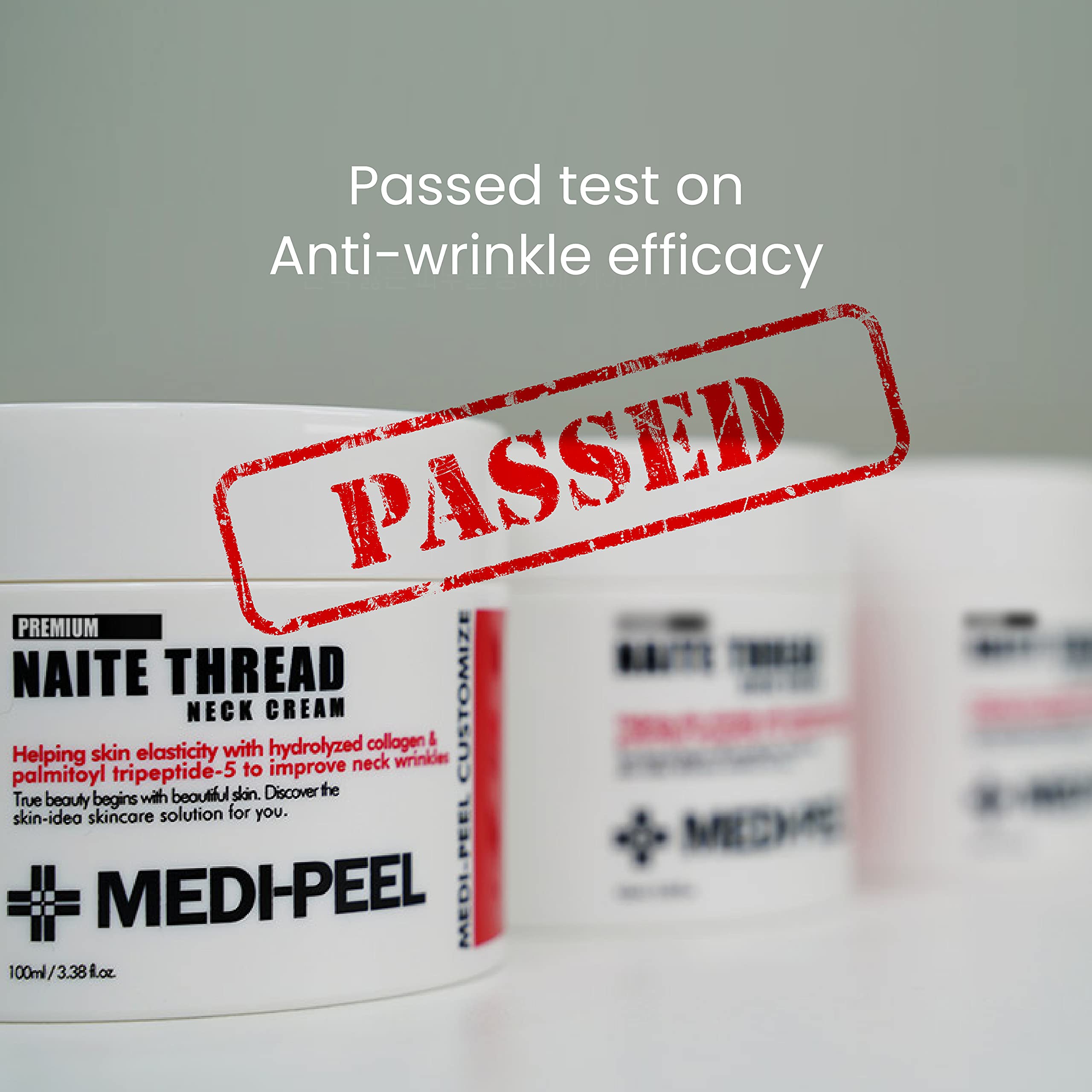 MEDI-PEEL Naite Thread Neck Cream has been specially developed for the skin needs on the neck and décolleté. Enriched with hydrolysed collagen, niacinamides and adenosins. It visibly tightens and firms wrinkles and sagging skin in the neck and décolleté area. Day after day your skin is optimally cared for and preserves its natural elegance and firmness. It is the rich care for dry, demanding and mature skin. Directions for use: Apply morning and/or evening from chin to cleavage in gentle stroking movements. Contents: 100 ml. Cream helps to reduce the appearance of excess fatty tissue that accumulates in the neck area and cause sagging and puffiness. Contains special ingredients to firm and reduce fine lines, wrinkles and crepe skin that forms around the chin, neck and décolleté area. Experience signs of improvement within just a few days of application. It firms up the skin and helps with elasticity, tightens and hydrates. Volume: 100 ml.