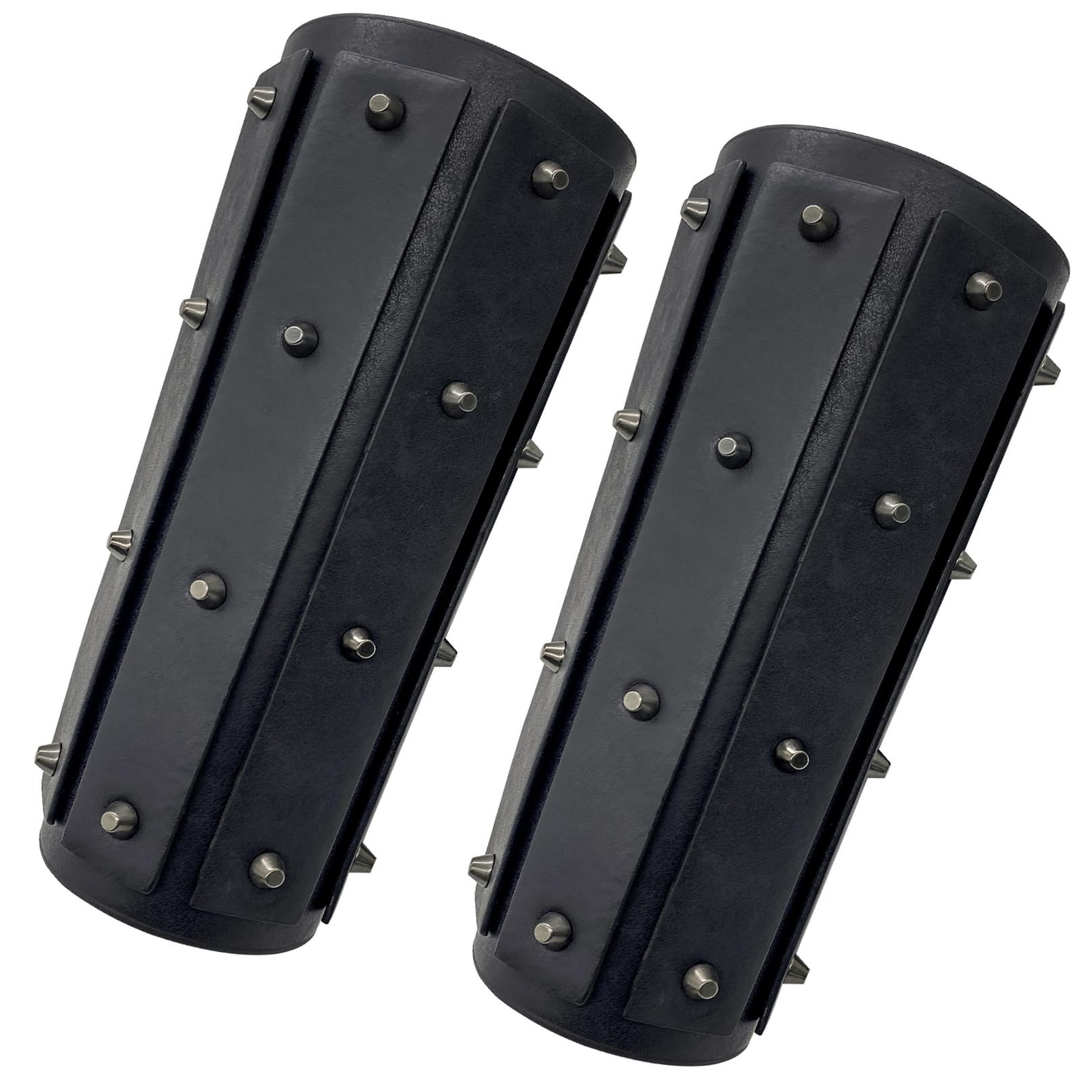 Medieval Vintage Faux Leather Bracers,Viking Gauntlet Wristband,Wide Mercenary Arm Guards,Renaissance Knight Arm Cuff Armor for LARP (Black A)
