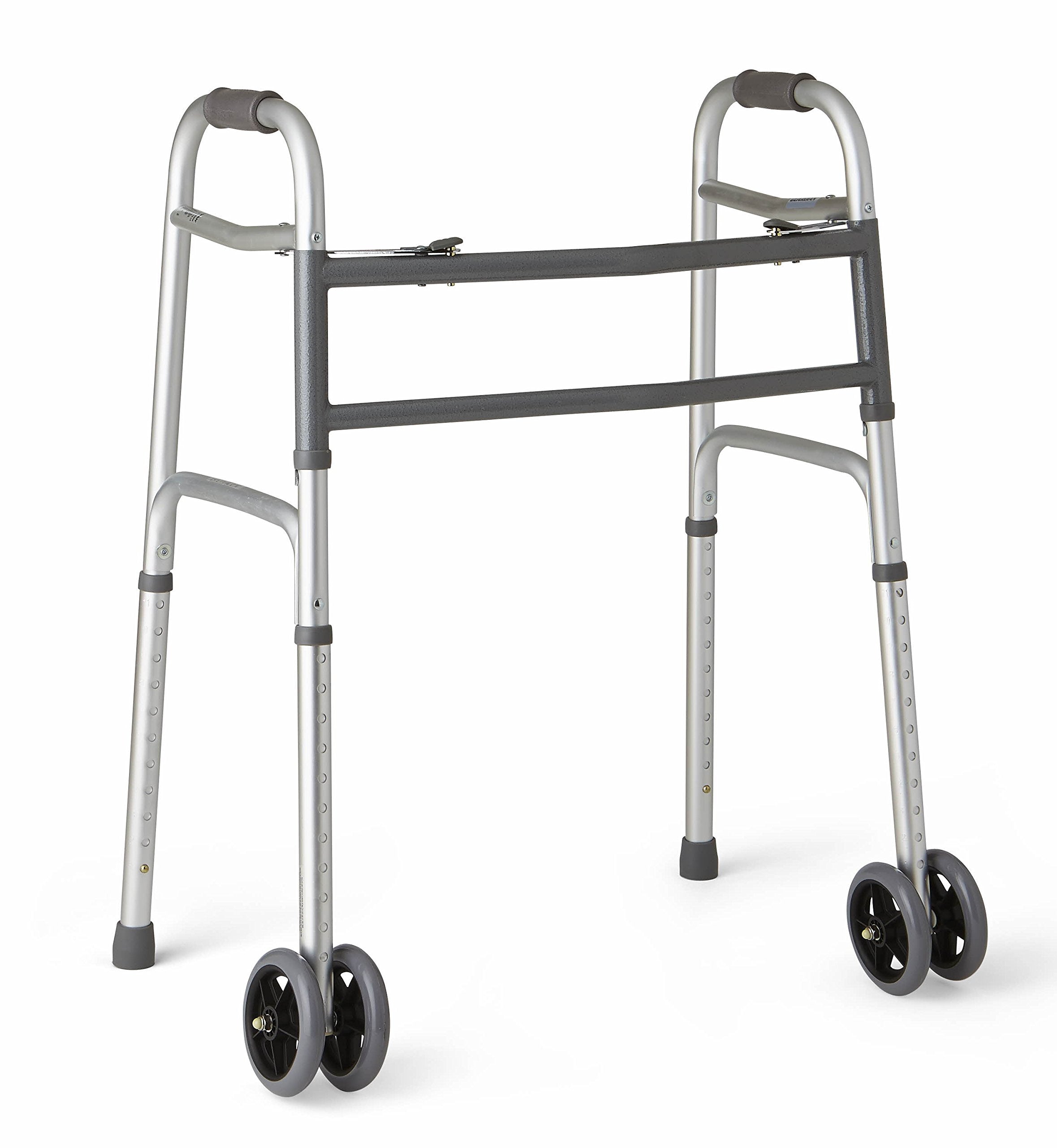 The Medline Heavy-Duty Bariatric Folding Walker with 5” wheels and durable handles is a sturdy and reliable walker that is perfect for people who need extra support. The walker weighs 11 lbs. and has a weight capacity of 500 lbs., making it ideal for plus-sized individuals. The height can be easily adjusted from 33.5” to 43.5”. The foldable walker also features 5” wheels that provide a smooth and comfortable ride. The durable handles provide a comfortable grip, and it’s easy to fold and unfold for portability.