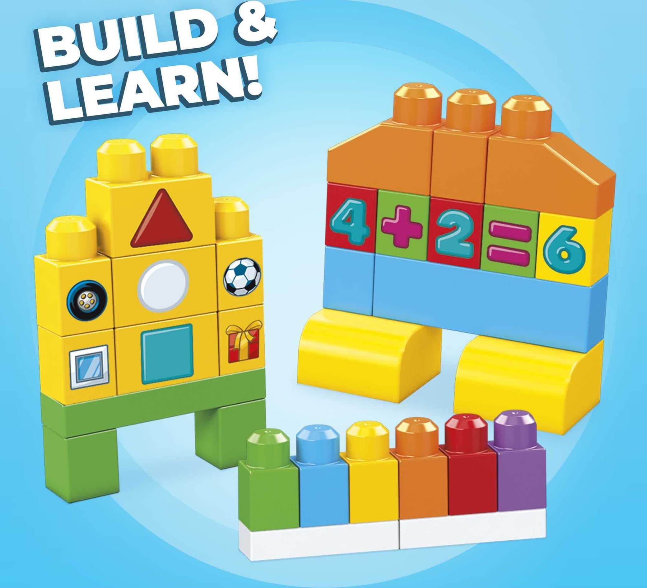 Build skills for school when you learn colors, numbers, shapes and more! Little tots can get ready for school when they use 150 big building blocks to learn everything from shapes, colors, and counting to math and problem solving! Made for toddlers' little hands and curious minds, the colorful blocks are printed with numbers and pictograms as well as shapes for practicing association and other classroom skills. Spark creativity and use the blocks to build and rebuild anything you imagine before putting everything away in the handy storage bag! Ideal for First Builders, ages 1+