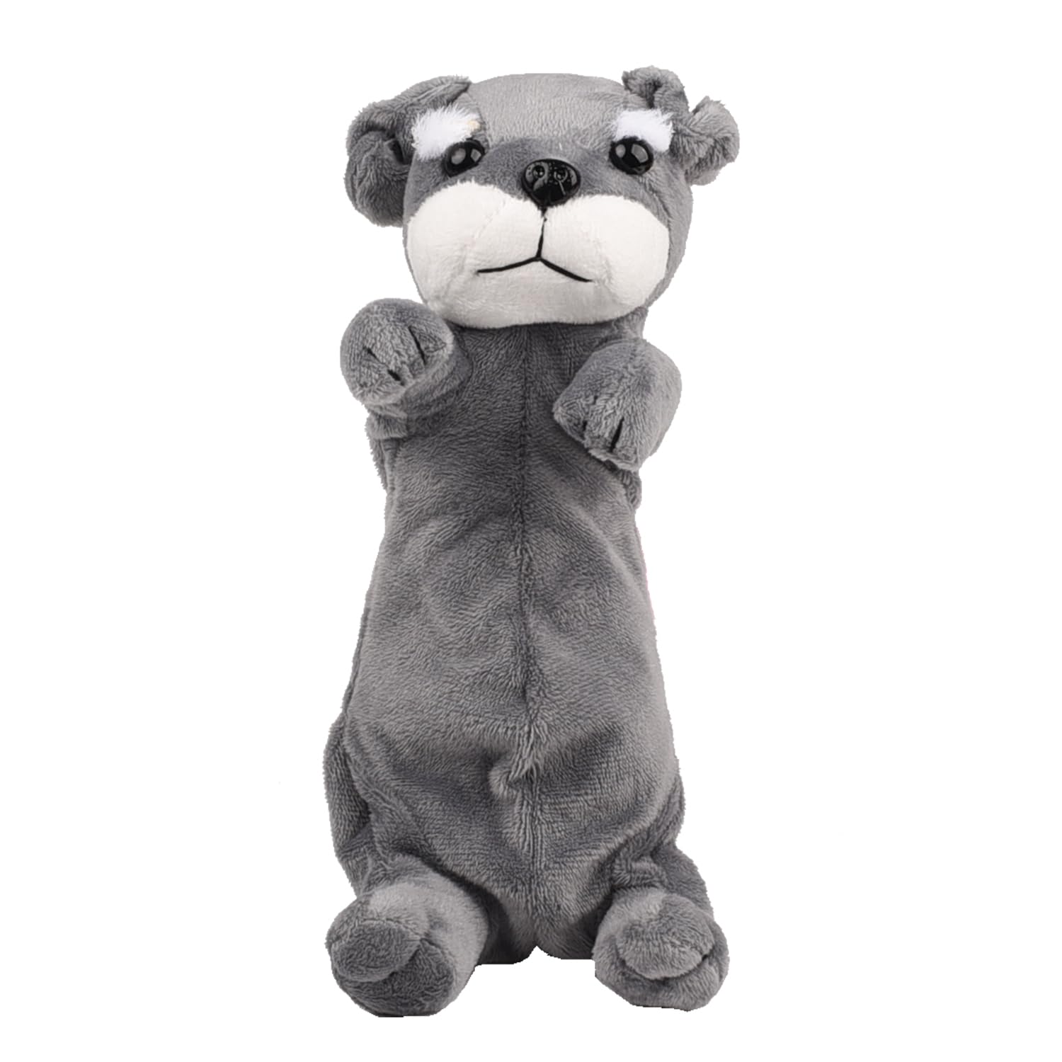 MEISH Dog Shape Pencil Pen Bags 3D Plush Animal Pencil Case Stationery Storage Organizer for School Stationery Supplies (Grey)
